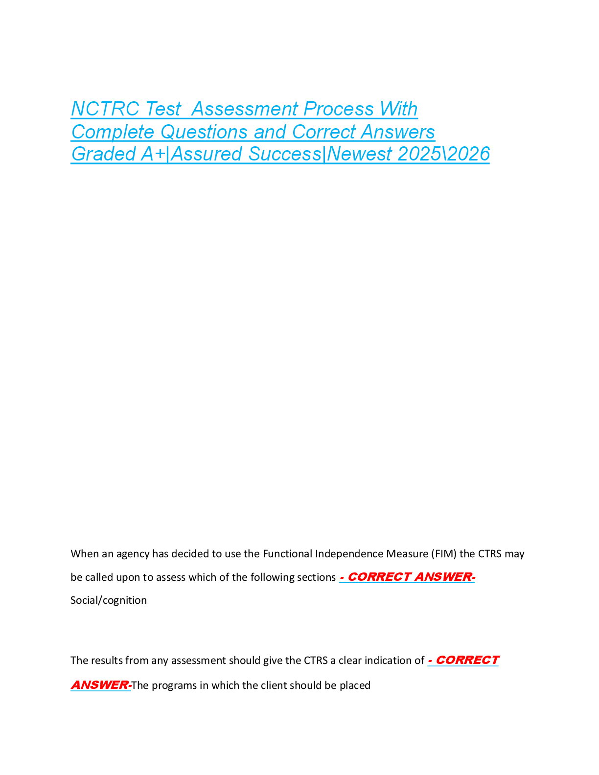 *NURSING > EXAM > NCTRC Test Assessment Process With Complete Questions and Correct Answers Graded A+|Assured Success|Newest 2025\2026