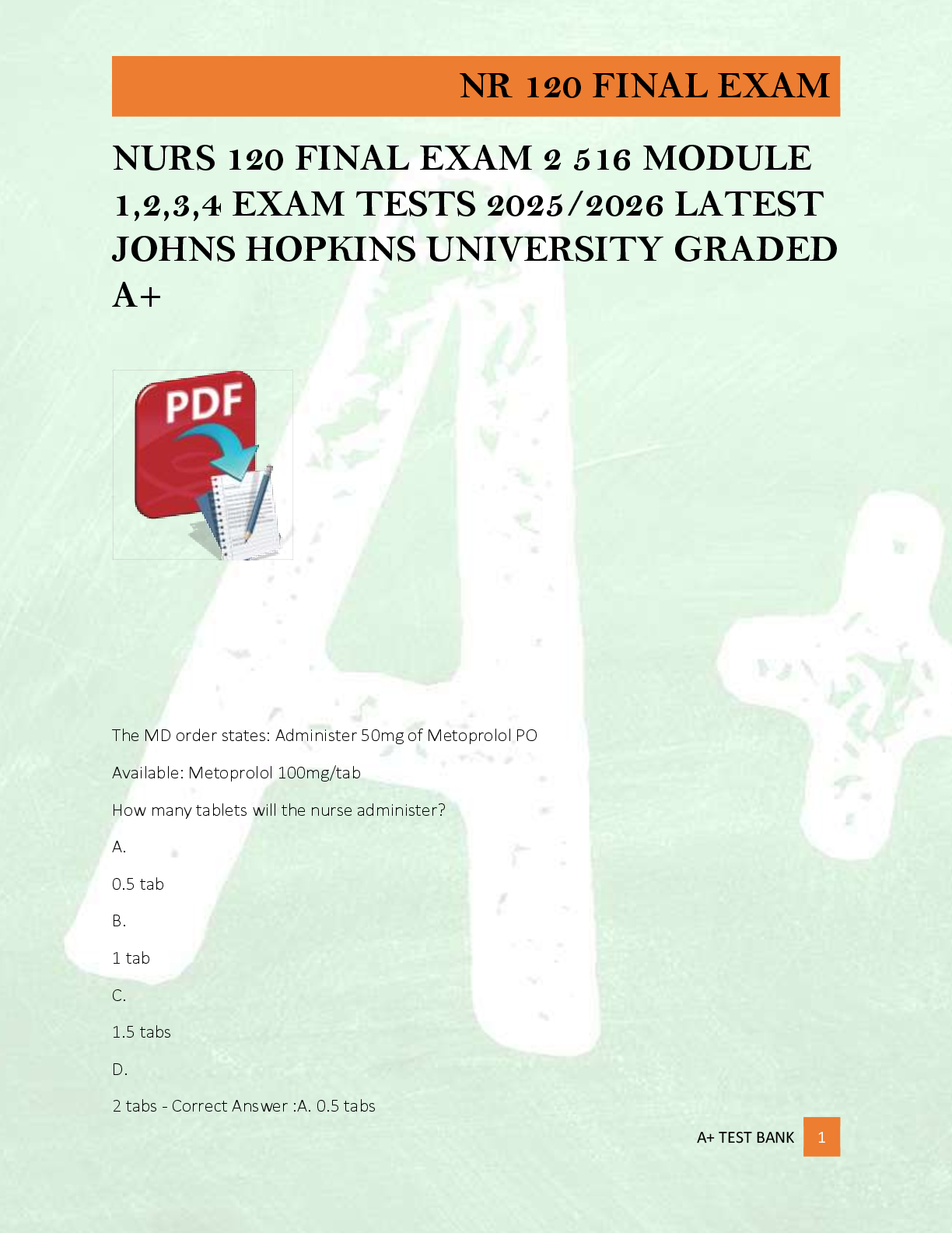 *NURSING > EXAM > NURS 120 FINAL EXAM 2 516 MODULE 1,2,3,4 EXAM TESTS 2025/2026 LATEST JOHNS HOPKINS UNIVERSITY GRADED A+