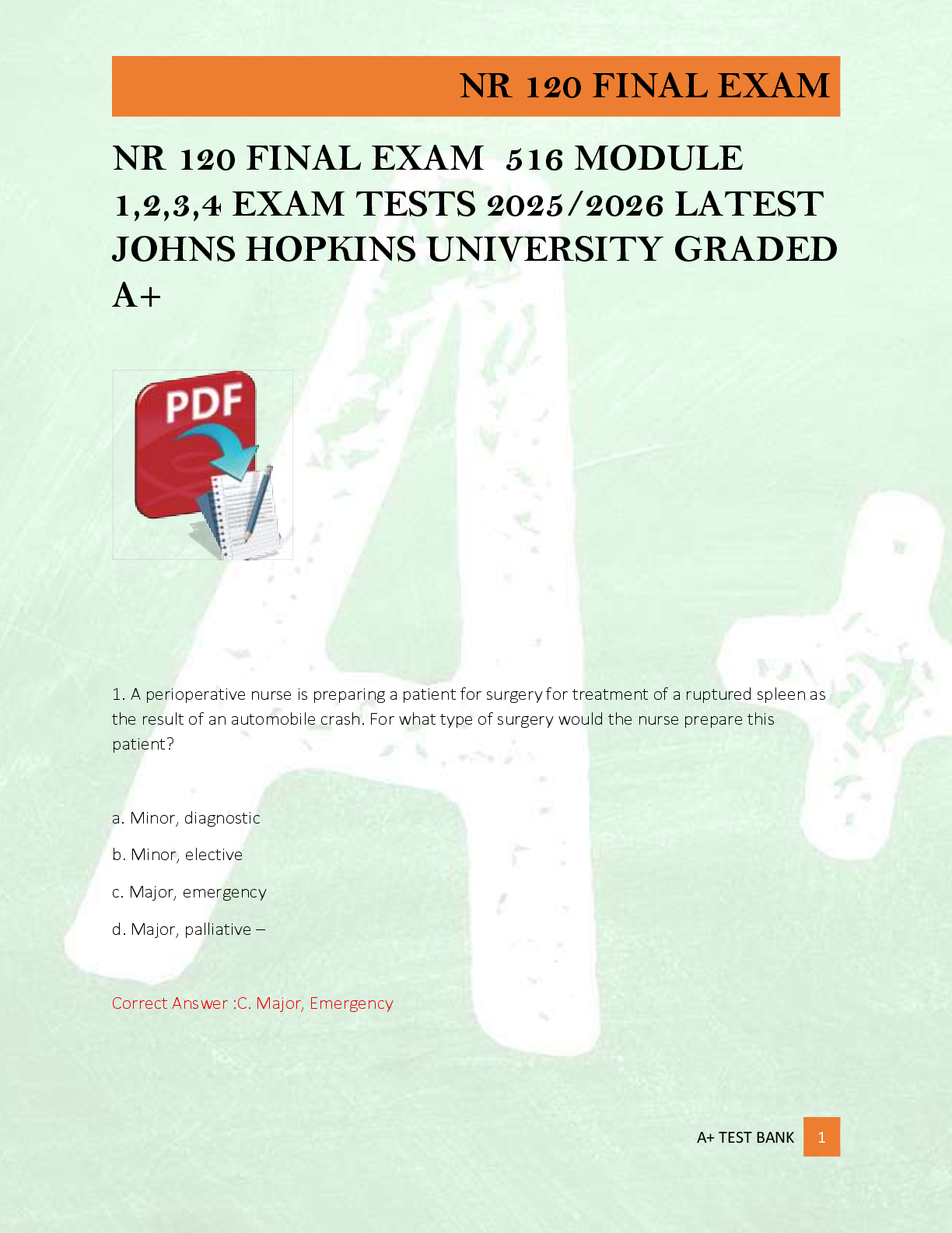 *NURSING > EXAM > NR 120 FINAL EXAM 516 MODULE 1,2,3,4 EXAM TESTS 2025/2026 LATEST JOHNS HOPKINS UNIVERSITY GRADED A+