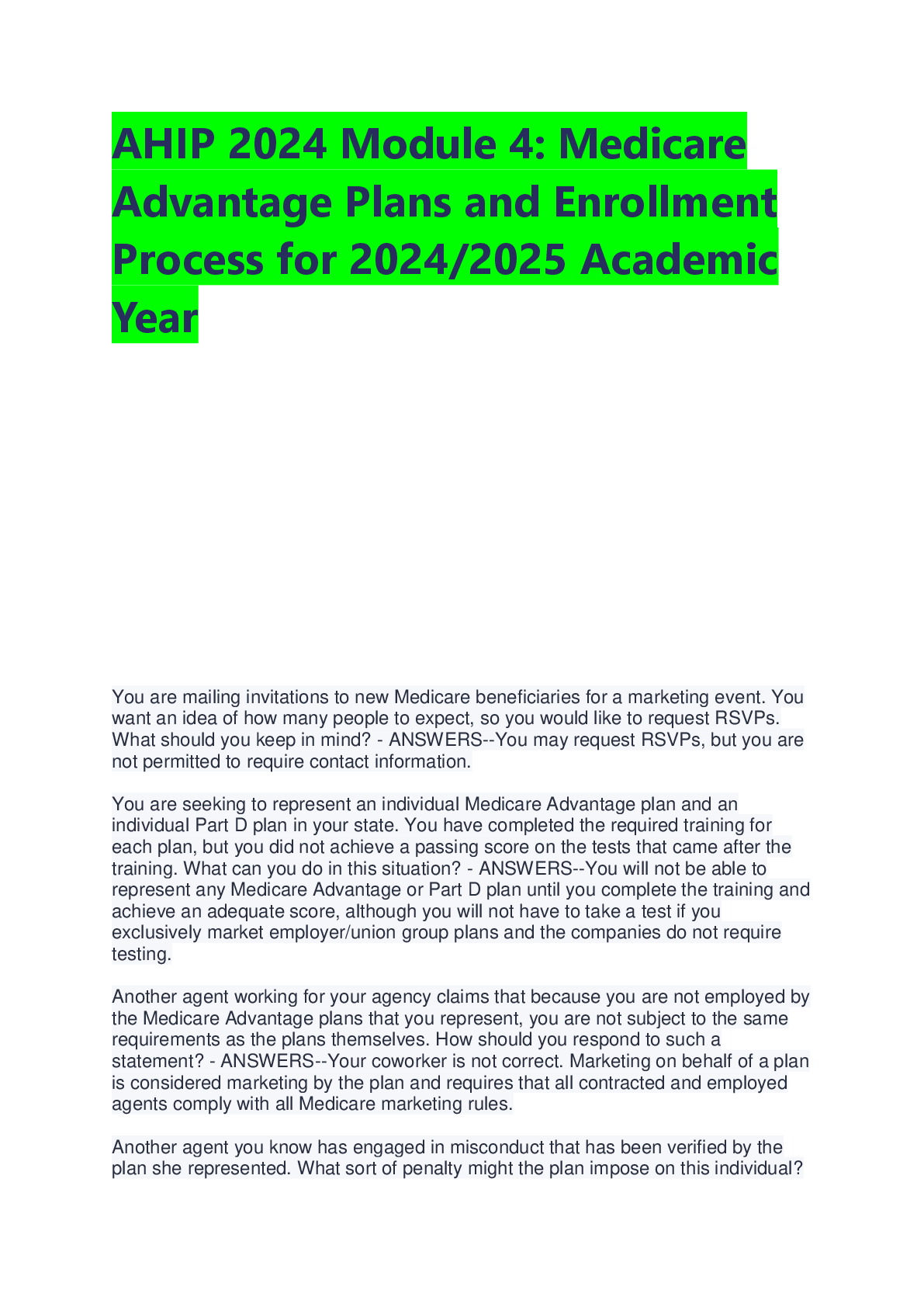 *NURSING > EXAM > AHIP 2024 Module 4: Medicare Advantage Plans and Enrollment Process for 2024/2025 Academic Year