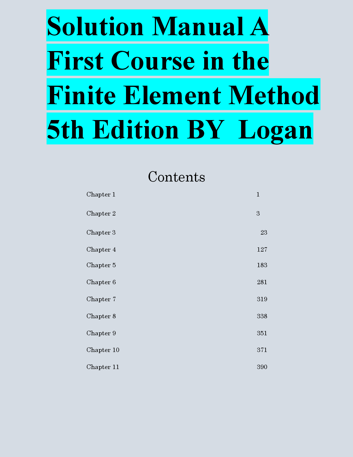 *NURSING > EXAM > Solution Manual A First Course in the Finite Element Method 5th Edition BY Logan
