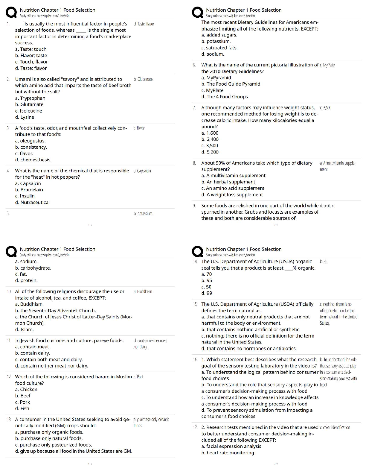 Food and Nutrition > QUESTIONS & ANSWERS > Nutrition Chapter 1: Food Selection / Score 100% / 2025 Update / Study Guide & Test Bank