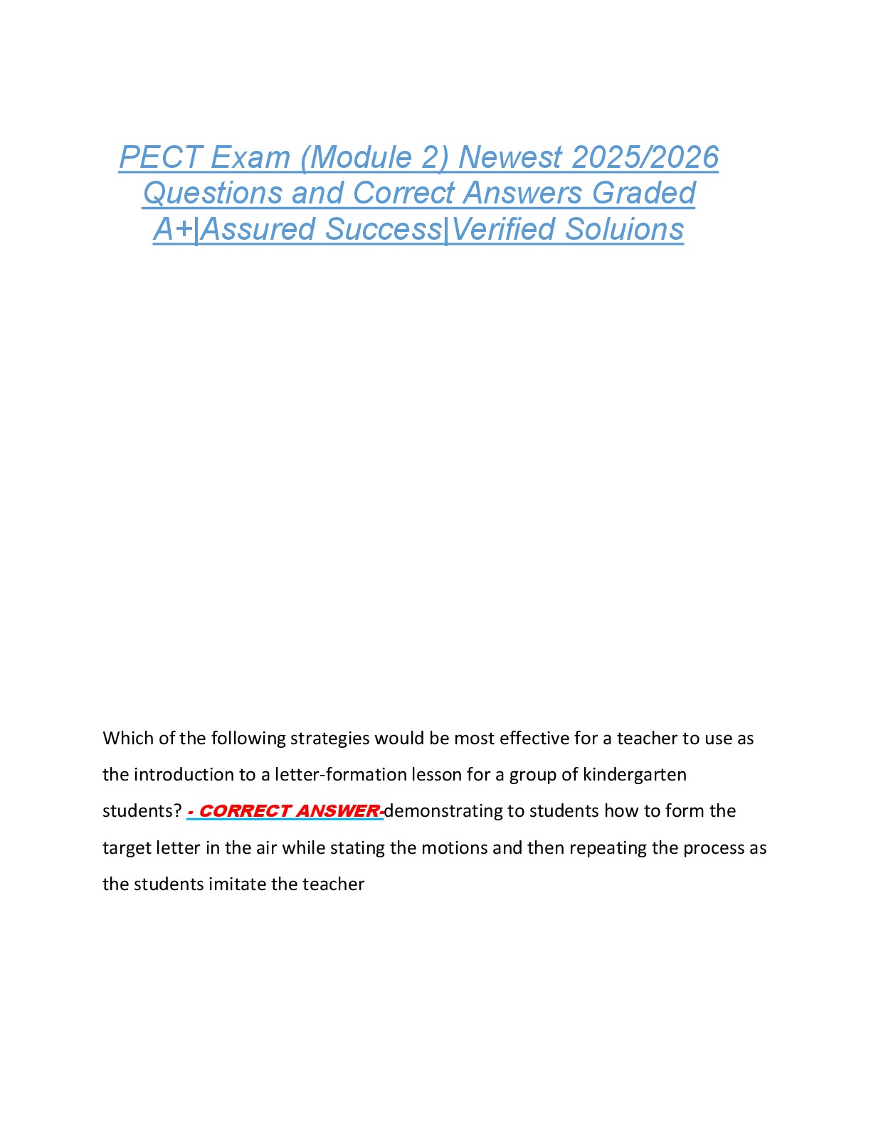 *NURSING > EXAM > PECT Exam (Module 2) Newest 2025/2026 Questions and Correct Answers Graded A+|Assured Success|Verified Soluions