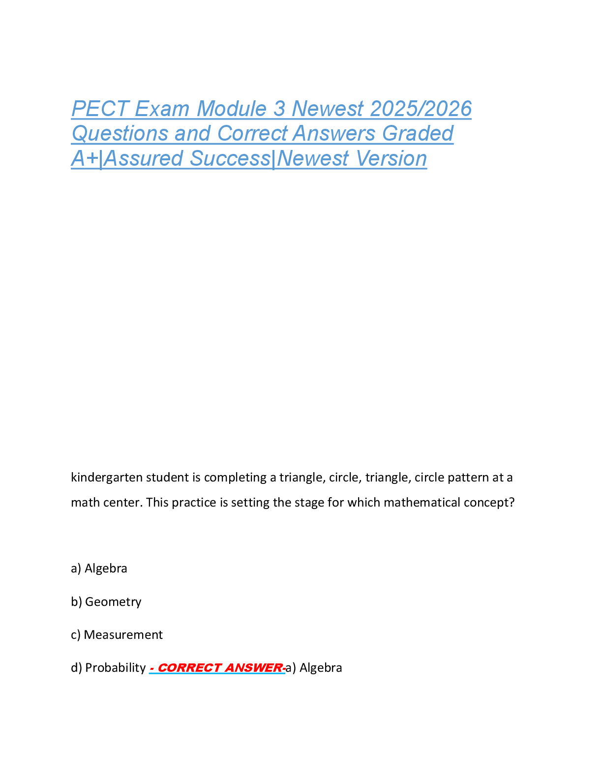 *NURSING > EXAM > PECT Exam Module 3 Newest 2025/2026 Questions and Correct Answers Graded A+|Assured Success|Newest Version