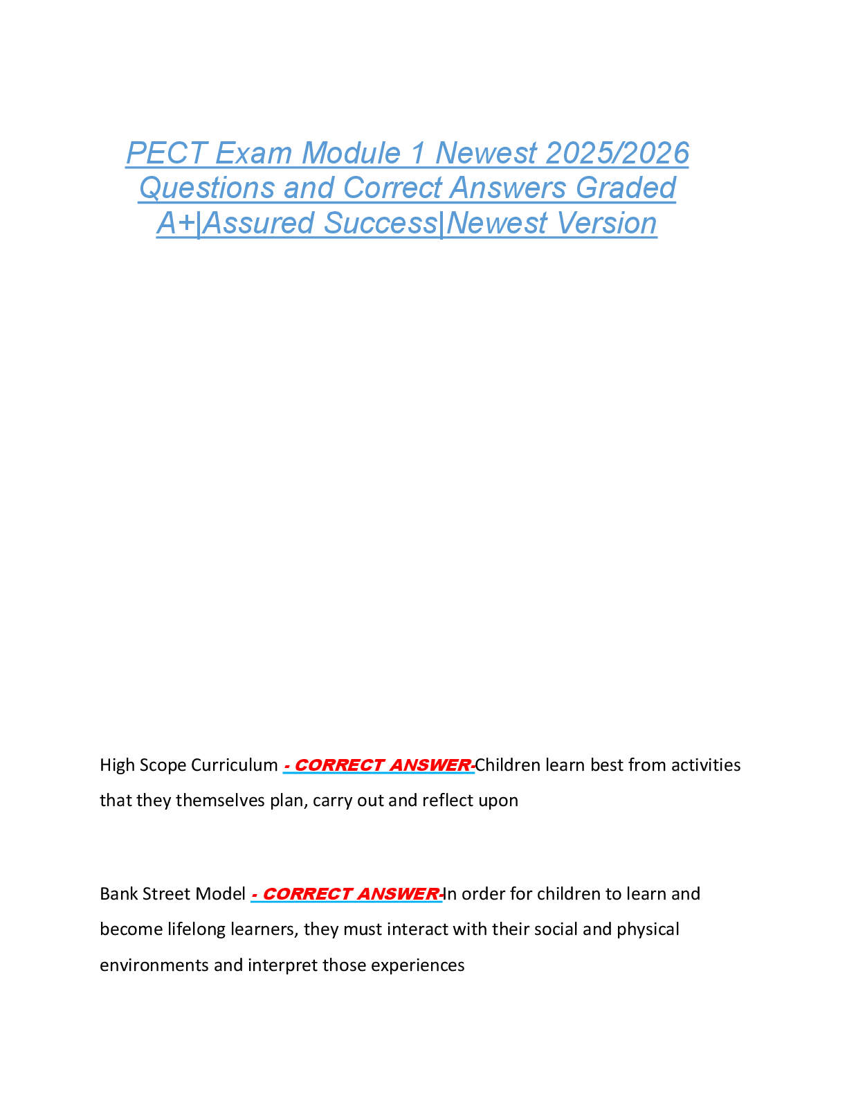 *NURSING > EXAM > PECT Exam Module 1 Newest 2025/2026 Questions and Correct Answers Graded A+|Assured Success|Newest Version
