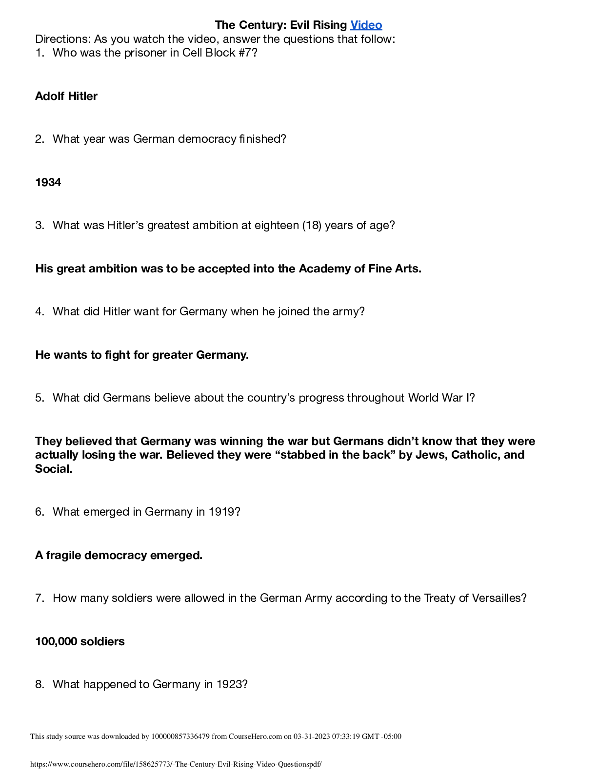 History > QUESTIONS & ANSWERS > WORLD HISTORY 1201 Array The Century: Evil Rising