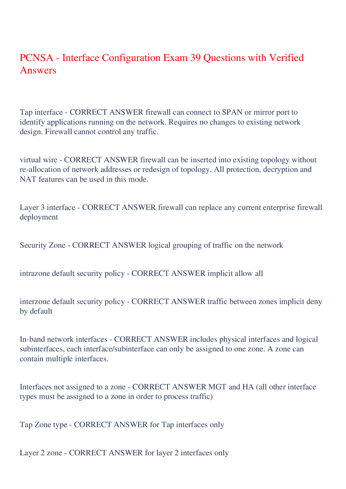 Business > EXAM > PCNSA - Interface Configuration Exam 39 Questions with Verified Answers,100% CORRECT