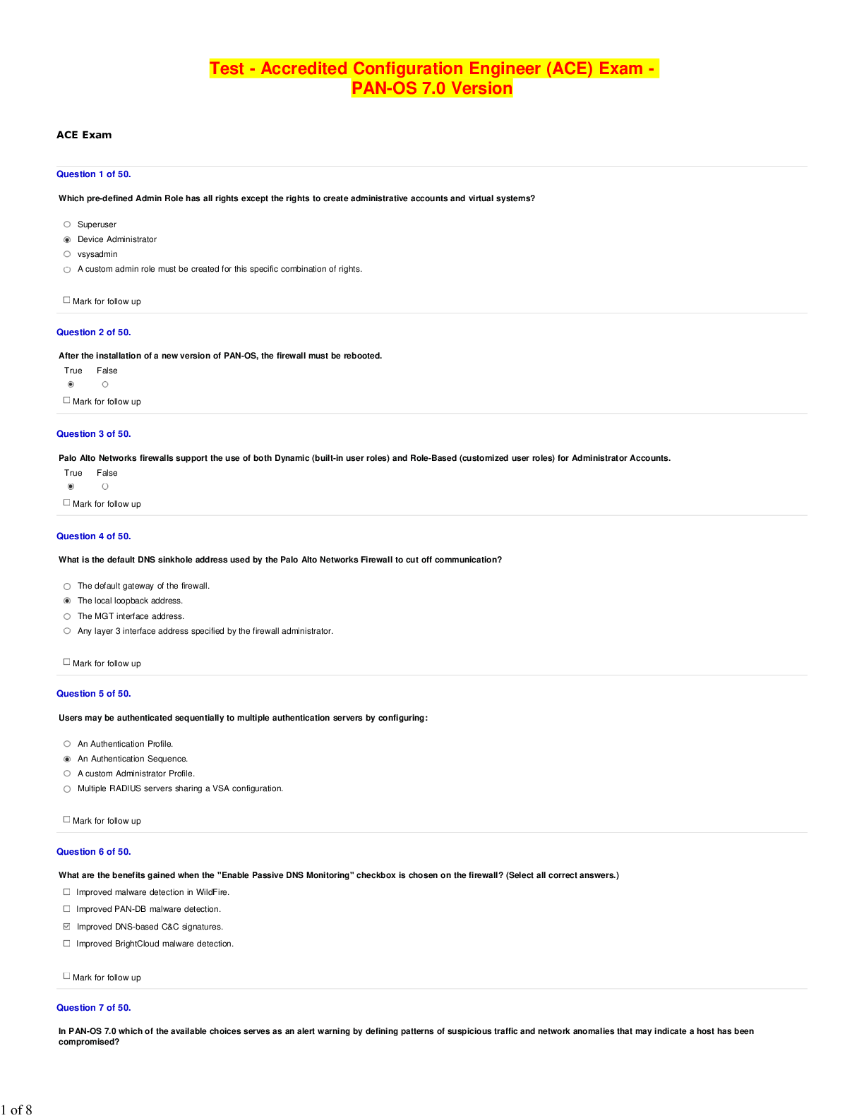 Computer Science > EXAM > Accredited Configuration Engineer (ACE) Exam - PAN-OS 7.0 Version