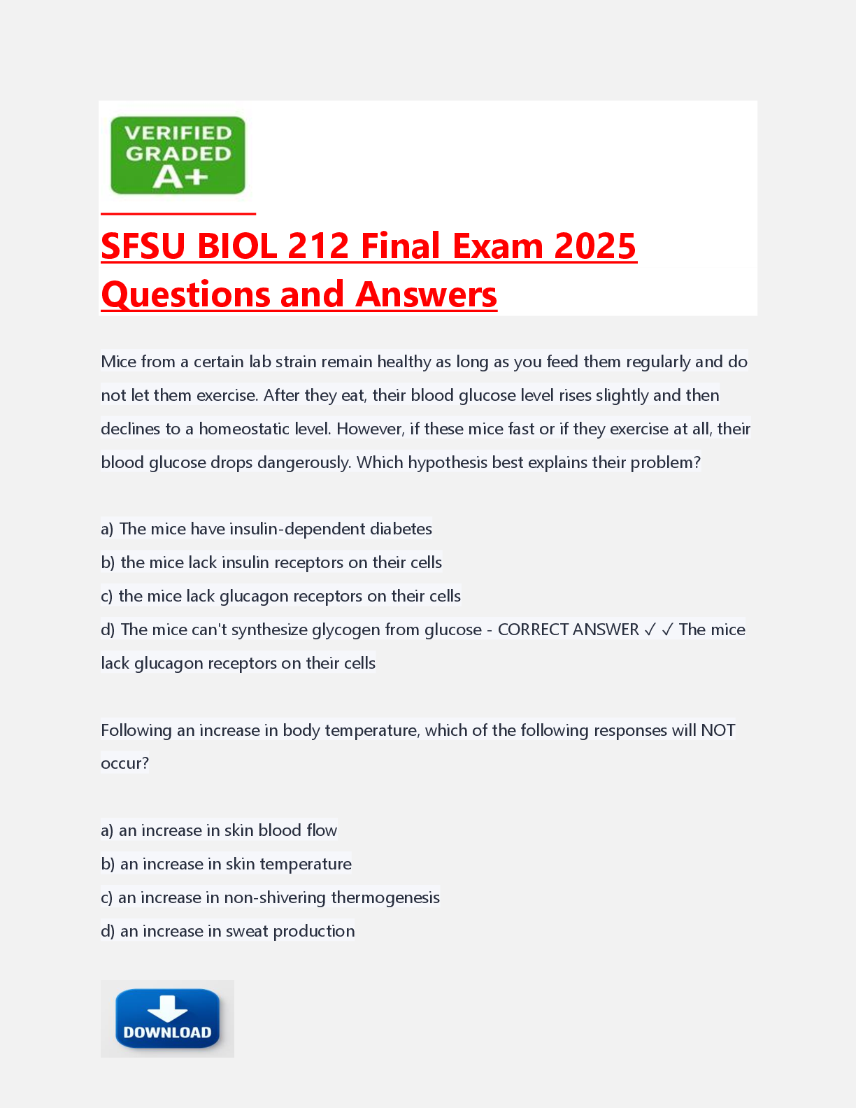 Biology > FINAL EXAM > SFSU BIOL 212 Final Exam 2025 Questions and Answers