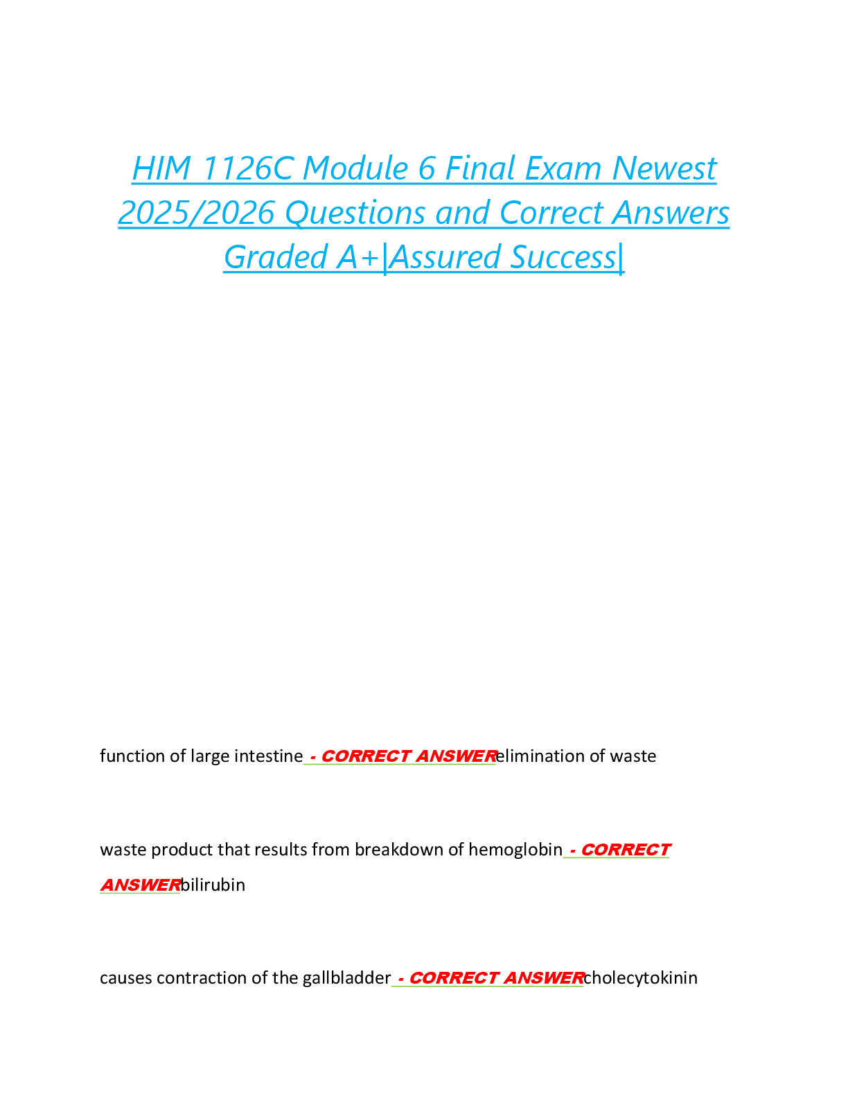 *NURSING > EXAM > HIM 1126C Module 6 Final Exam Newest 2025/2026 Questions and Correct Answers Graded A+|Assured Success|