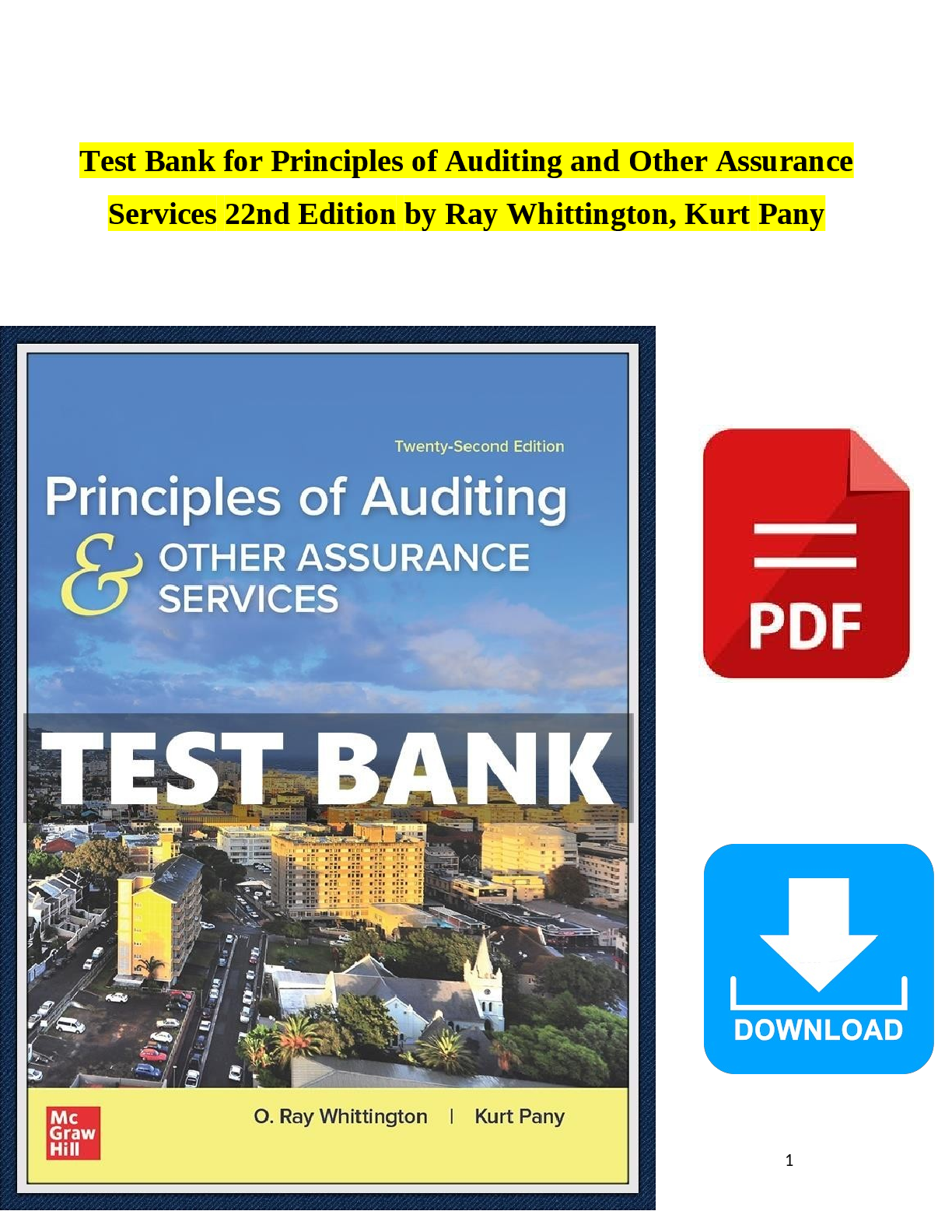 *NURSING > EXAM > Test Bank for Principles of Auditing and Other Assurance Services 22nd Edition by Ray Whittington, Kurt Pany