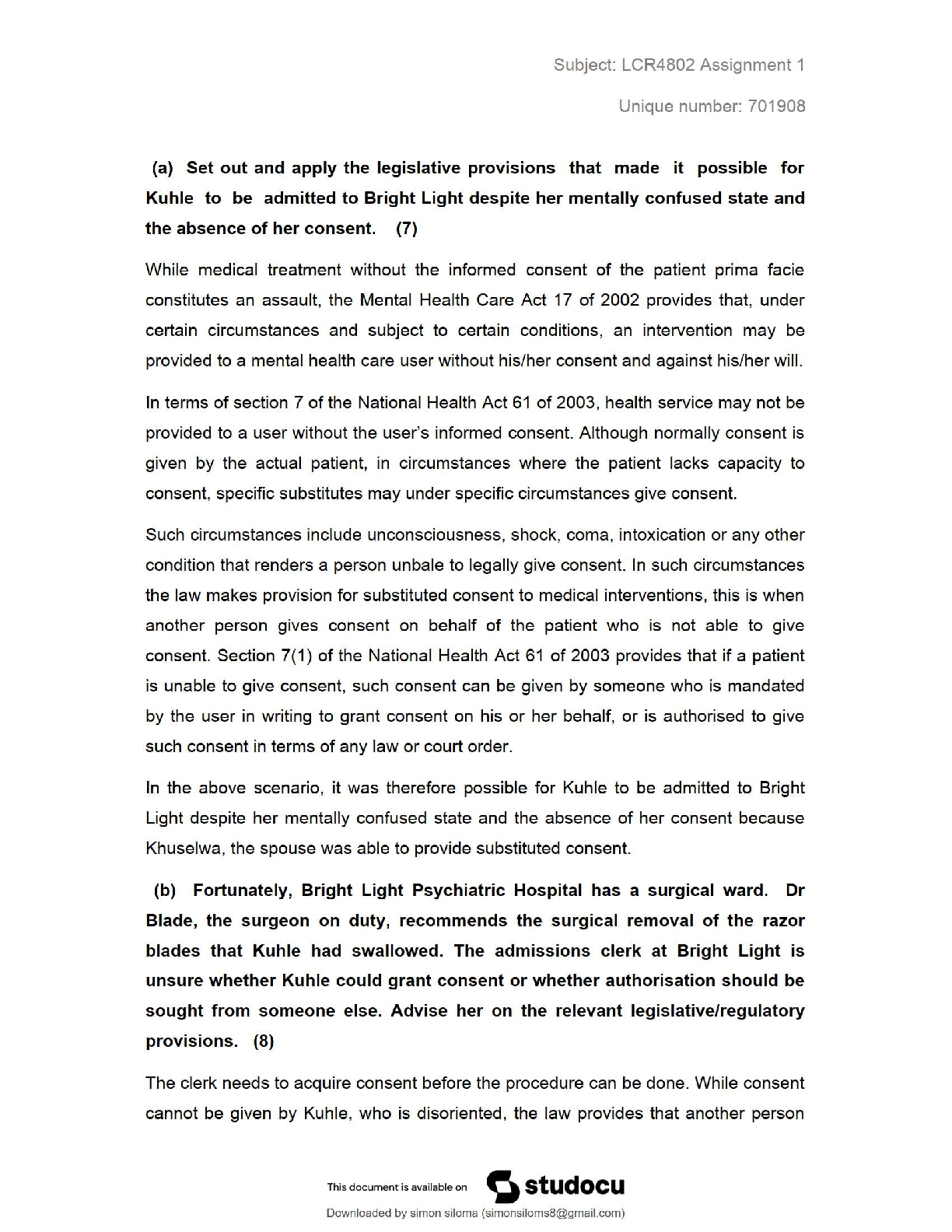 Health Care > QUESTIONS & ANSWERS > Medical Law 2013–2024 Mock Exams & Assignment Solutions / 2024 Update / Test Bank + Study Guide / Score 100% / New Version