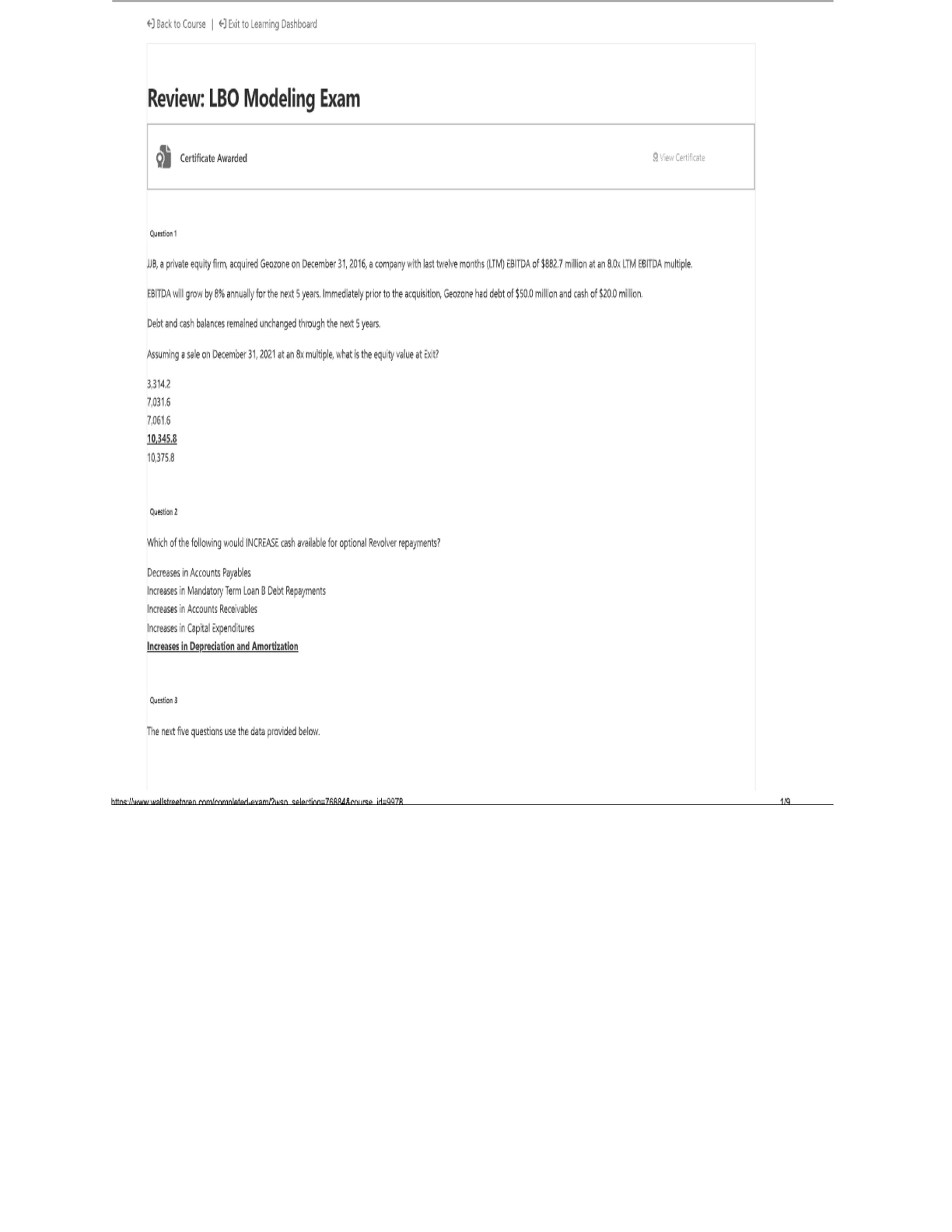 *NURSING > EXAM > LBO MODELLING EXAM FROM WALL STREET PREP 2024