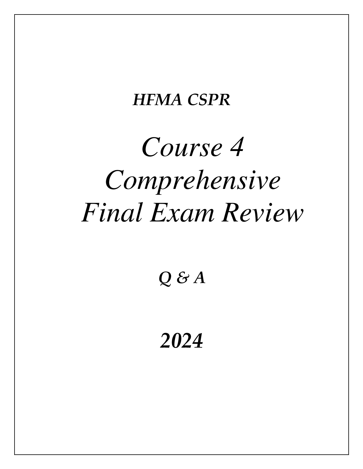 *NURSING > EXAM > HFMA CSPR COURSE 4 MANAGED CARE REIMBURSEMENT METHODOLOGIES COMPREHENSIVE REVIEW Q & A 2024