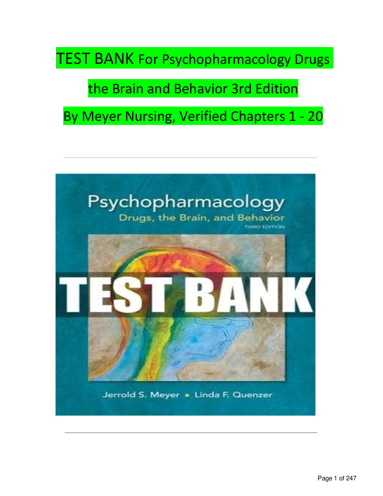 Pharmacology > TEST BANKS > Test Bank for Psychopharmacology: Drugs, the Brain, and Behavior, 3rd Edition by Meyer & Quenzer | ISBN: 9781605355559 | Verified Chapters 1-2 | MCQ with Rationales | Downloadable PDF