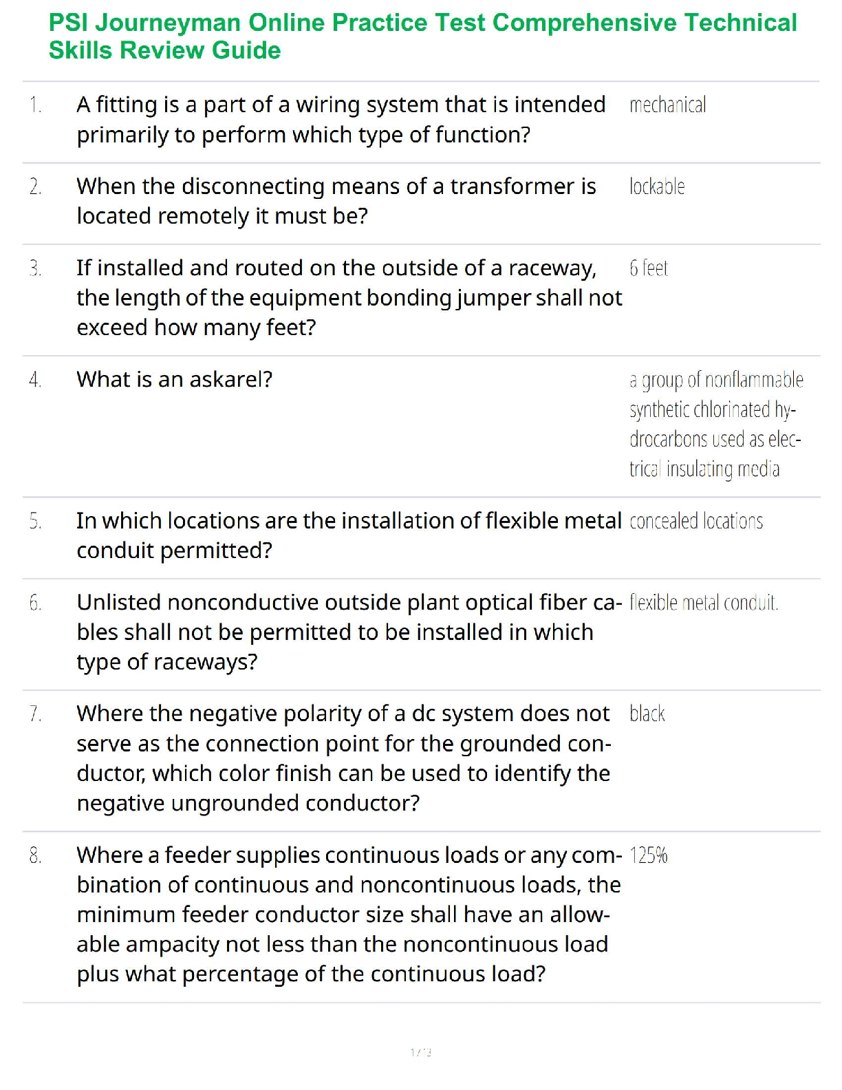 EconomicsSTUDY GUIDE  > PSI Journeyman Online Practice Test Comprehensive Technical Skills Review Guide