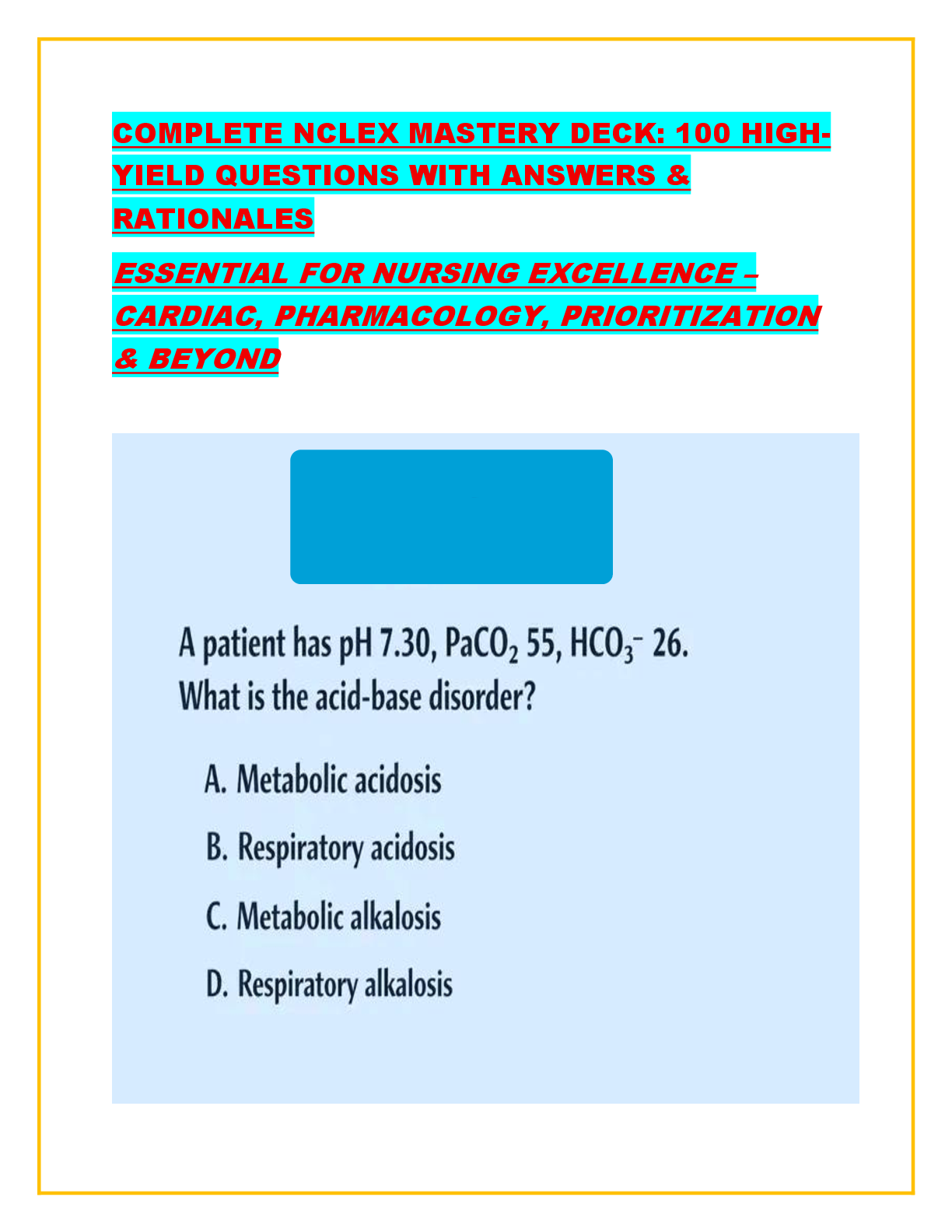 *NURSING > NCLEX > COMPLETE NCLEX MASTERY DECK: 100 HIGH-YIELD QUESTIONS WITH ANSWERS & RATIONALES ESSENTIAL FOR NURSING EXCELLENCE – CARDIAC, PHARMACOLOGY, PRIORITIZATION & BEYOND