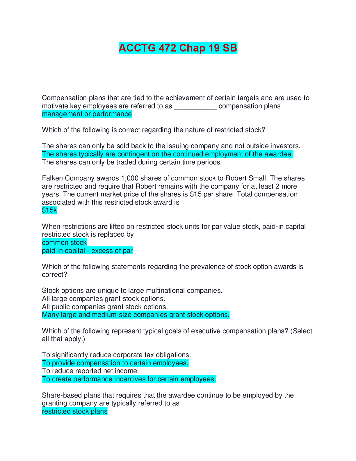 Accounting > EXAM > ACCTG 472 Chap 19 SB | Questions with 100% Correct Answers