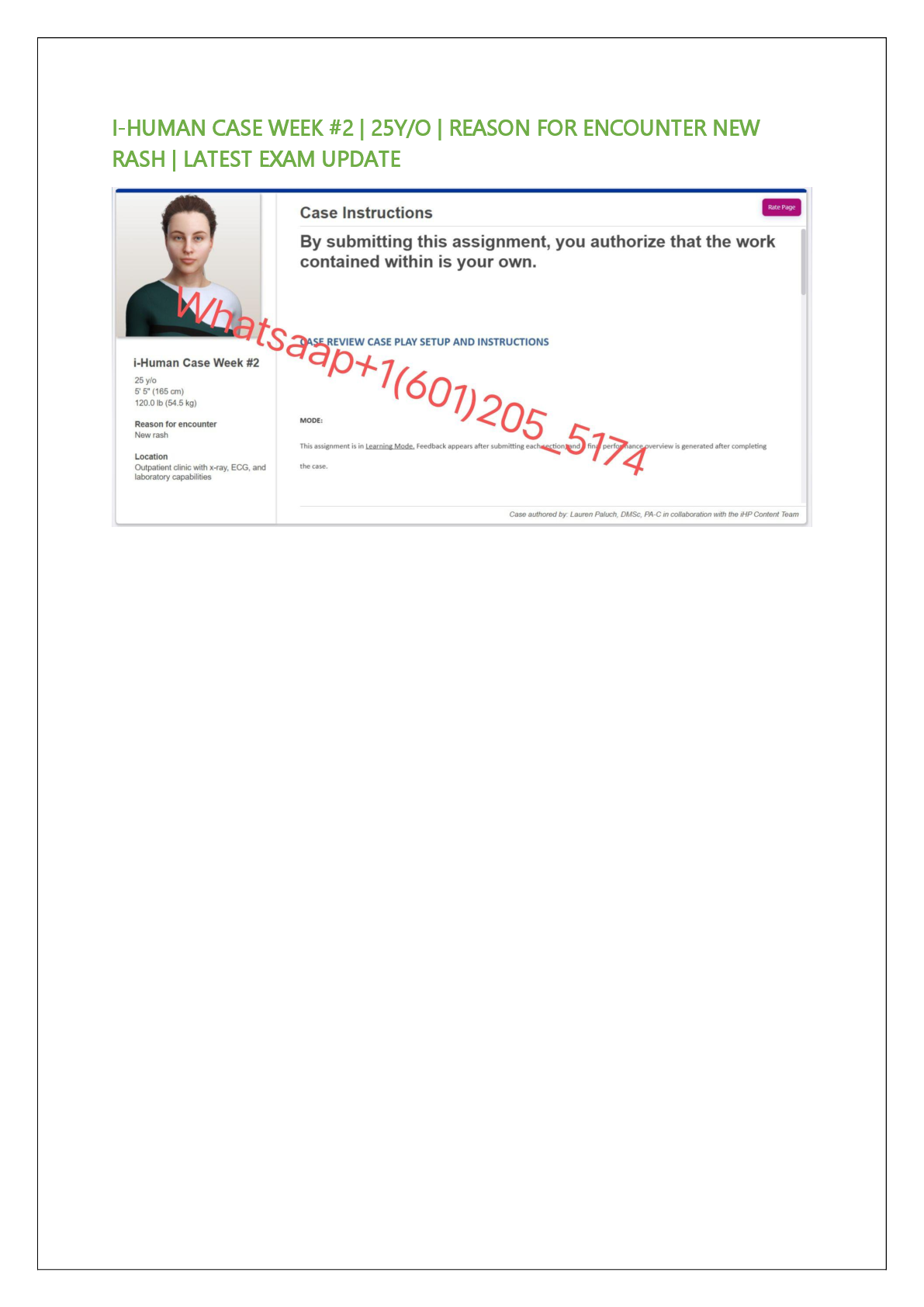 *NURSING > CASE STUDY > I-HUMAN CASE WEEK #2 | 25Y/O | REASON FOR ENCOUNTER NEW RASH | LATEST EXAM UPDATE