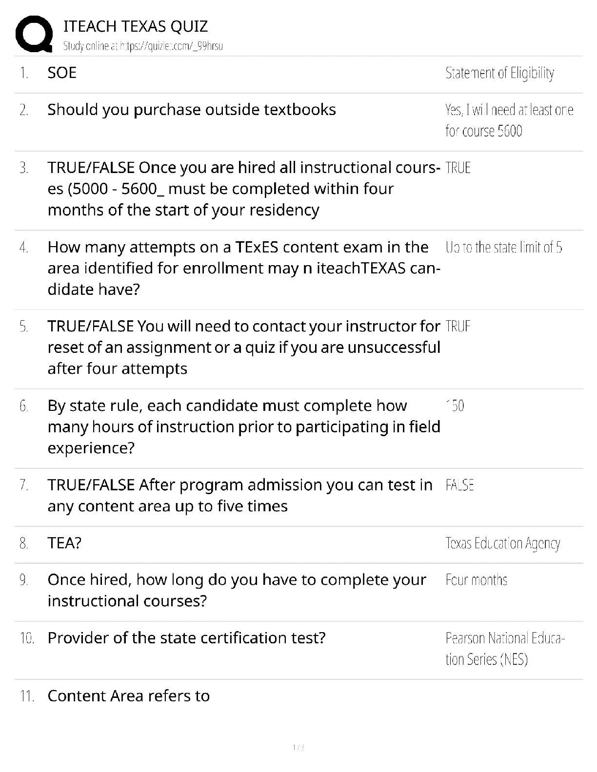 Education > QUESTIONS & ANSWERS > iTeach Texas Quiz / 2026 Study Guide / Teacher Certification Prep / Practice Test / Score 100%
