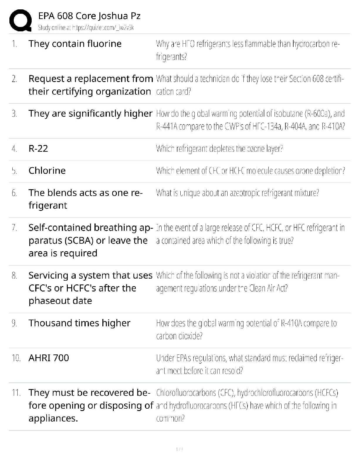 Emergency Preparedness & Management > QUESTIONS & ANSWERS > EPA 608 Core Exam Prep / Joshua Pz Study Guide / 2026 HVAC Certification / Score 100%