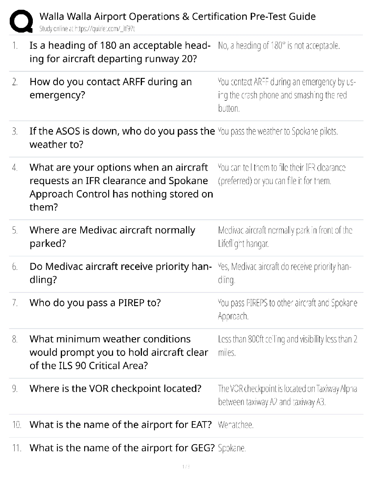 Aviation Maintenance Technician > QUESTIONS & ANSWERS > Walla Walla Airport Operations / Certification Pre-Test / 2026 AOCP Study Guide / Score 100%