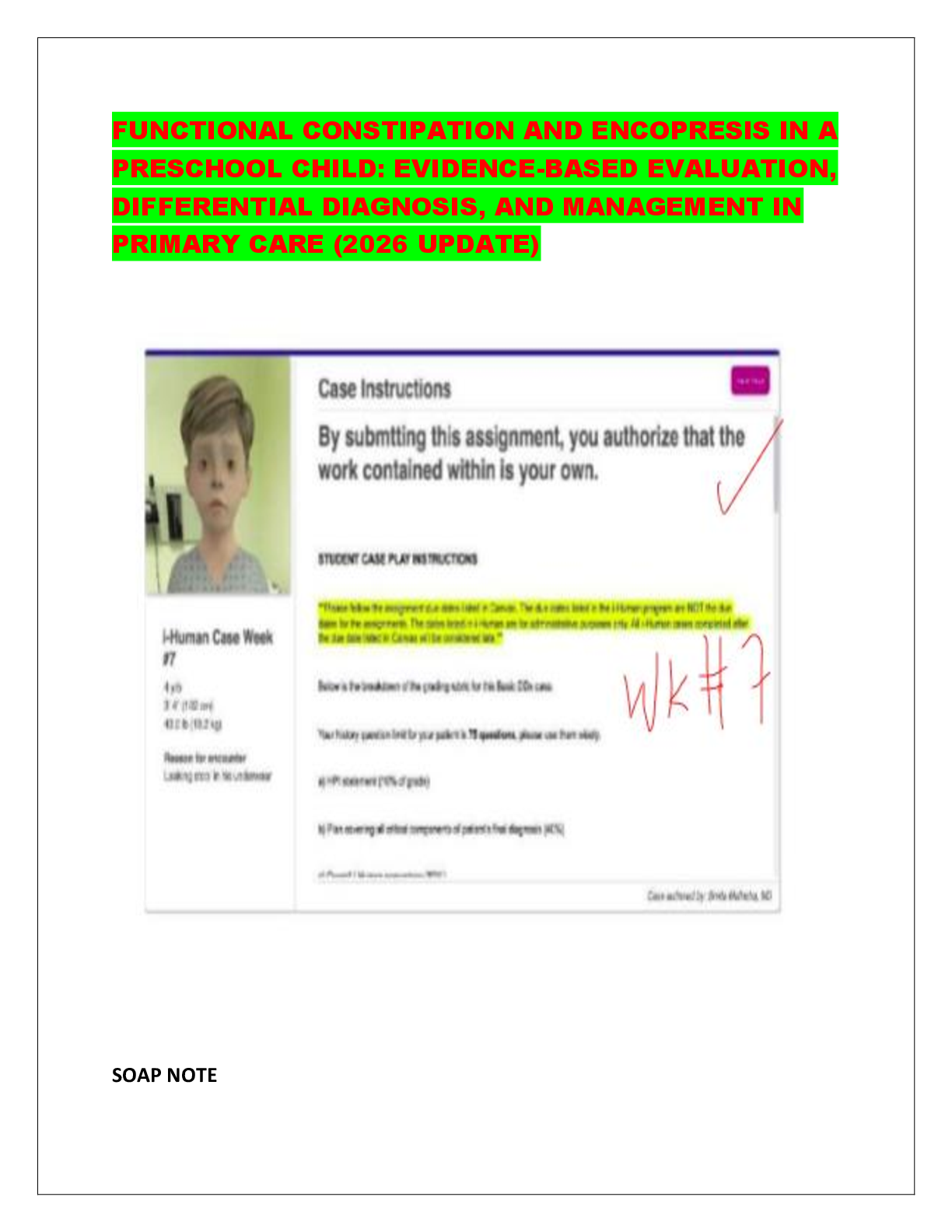 *NURSING > iHuman Case Studies > RETENTIVE FECAL INCONTINENCE IN A 4-YEAR-OLD MALE: COMPREHENSIVE SOAP CASE STUDY WITH CLINICAL GUIDELINES AND TREATMENT STRATEGIES (2026)