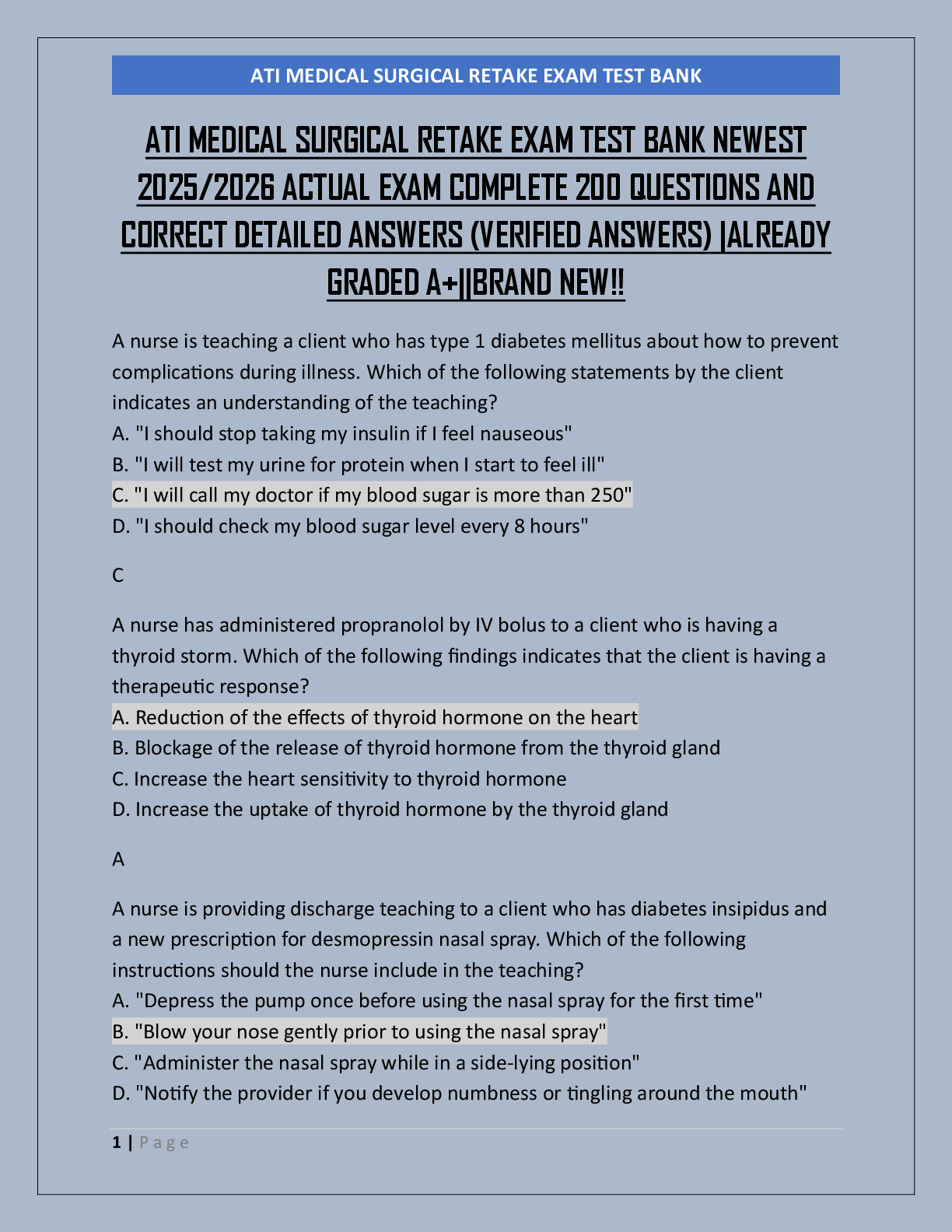 *NURSING > ATI MEDICAL SURGICAL > ATI MEDICAL SURGICAL RETAKE EXAM TEST BANK NEWEST 2025/2026 ACTUAL EXAM COMPLETE 200 QUESTIONS AND CORRECT DETAILED ANSWERS (VERIFIED ANSWERS) |ALREADY GRADED A+||BRAND NEW!!