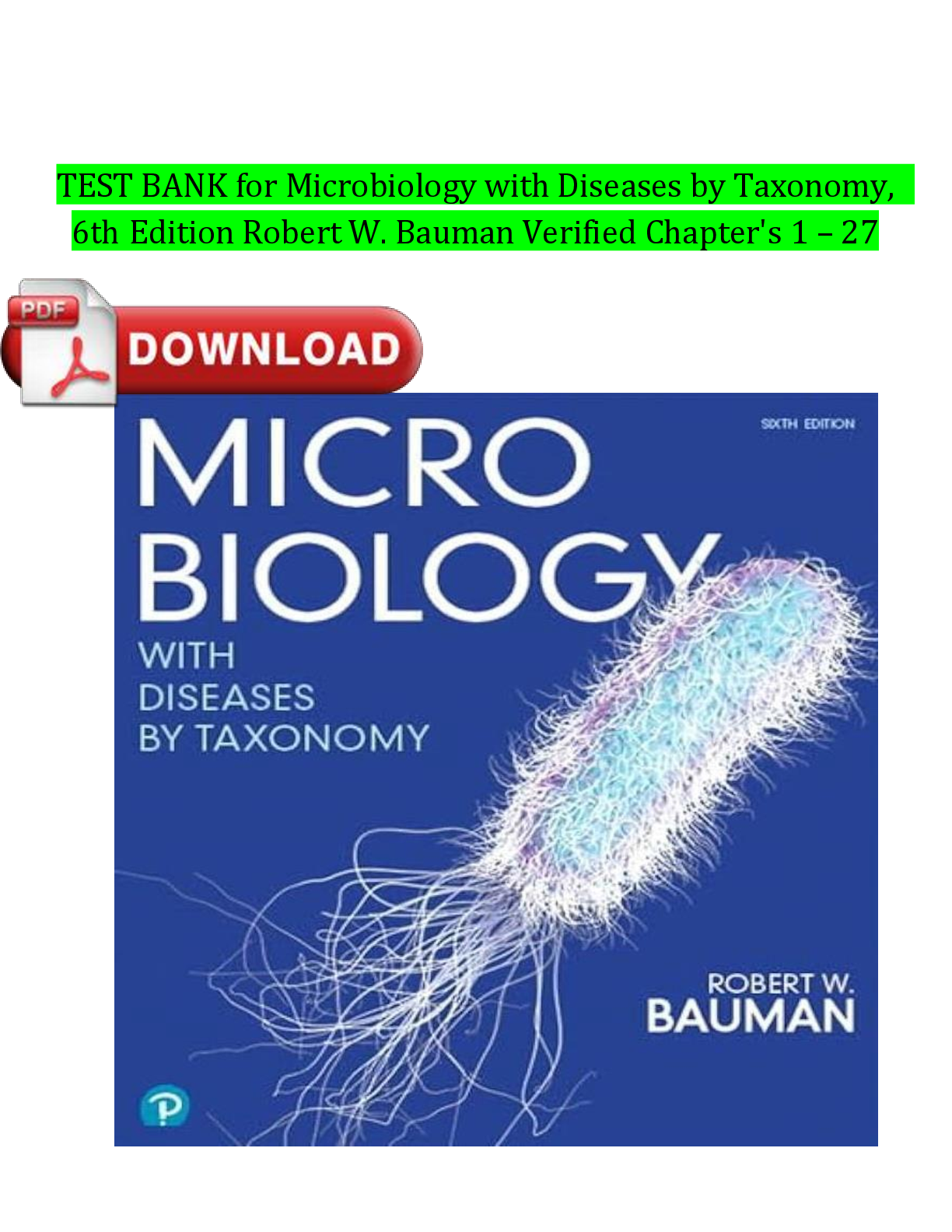 MicrobiologyTEST BANKS  > Test Bank for Microbiology with Diseases by Taxonomy, 6th Edition by Robert W. Bauman | ISBN: 9780134832302 | Verified Chapters 1-27 Complete | Downloadable PDF