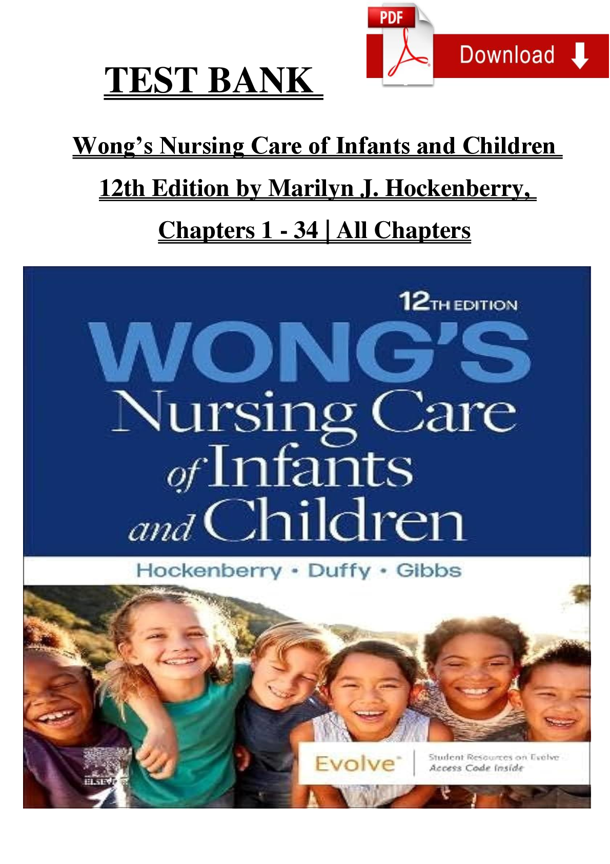 PEDIATRIC NURSINGTEST BANKS  > Test Bank for Wong's Nursing Care of Infants and Children, 12th Edition by Marilyn J. Hockenberry, Elizabeth A. Duffy & Karen DiValerio Gibbs | ISBN: 9780323776707 | Verified Chapters 1-34 | NGN-Style Q&A | Downloadable PDF