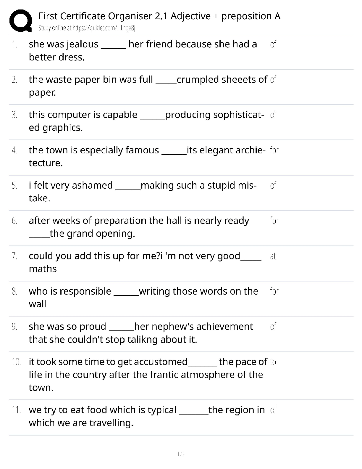 English > QUESTIONS & ANSWERS > First Certificate Organiser 2.1 / Adjective + Preposition Practice / 2025 Update / Score 100%