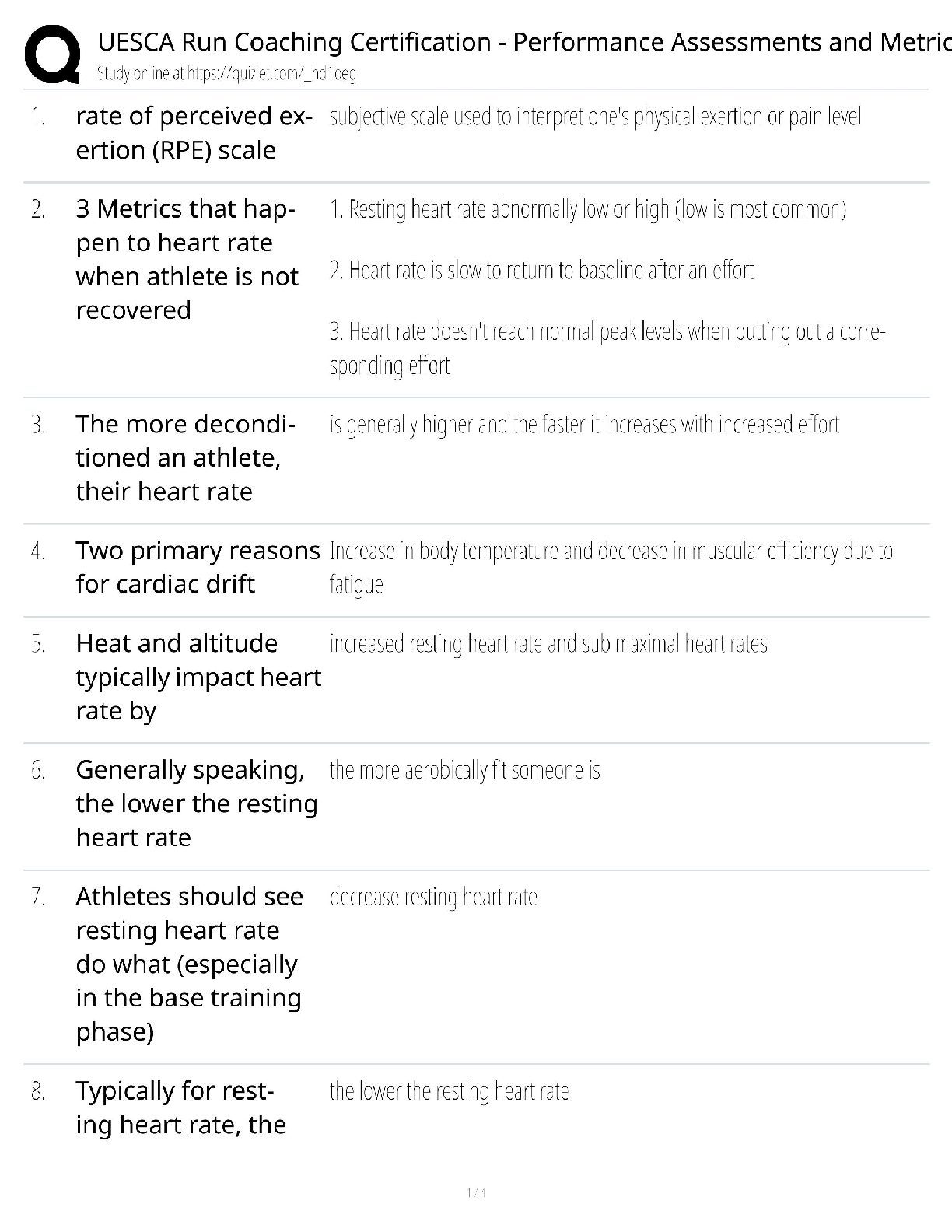 CERTIFIED FITNESS TRAINER > QUESTIONS and ANSWERS > UESCA Run Coaching Certification / Performance Assessments & Metrics / 2026 Exam Prep / Score 100%