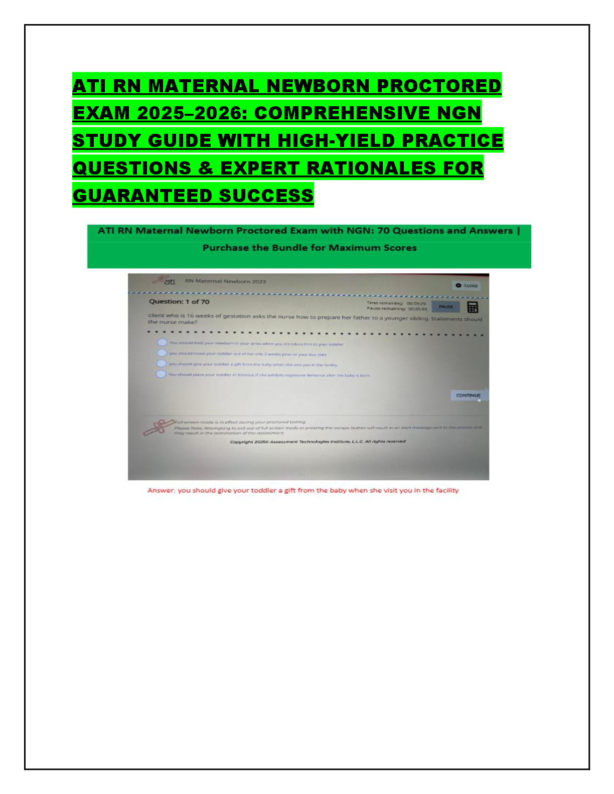 *NURSINGATI  > ATI RN MATERNAL NEWBORN PROCTORED EXAM 2025–2026: NGN PRACTICE QUESTIONS, HIGH-YIELD REVIEW & COMPREHENSIVE STUDY GUIDE FOR EXAM SUCCESS