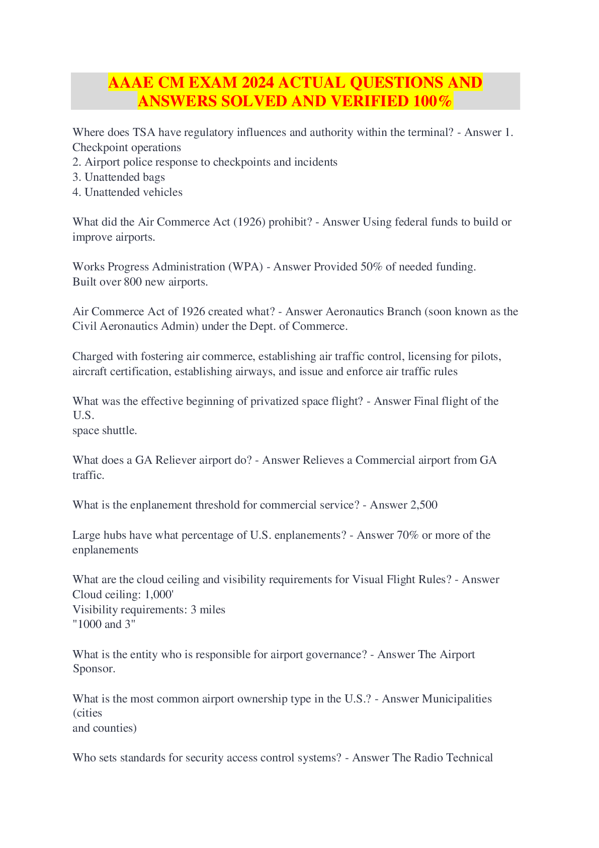 DRIVERS ED AAA|AAA DRIVERS ED > QUESTIONS and ANSWERS > AAAE CM EXAM 2024 ACTUAL QUESTIONS AND ANSWERS SOLVED AND VERIFIED 100%