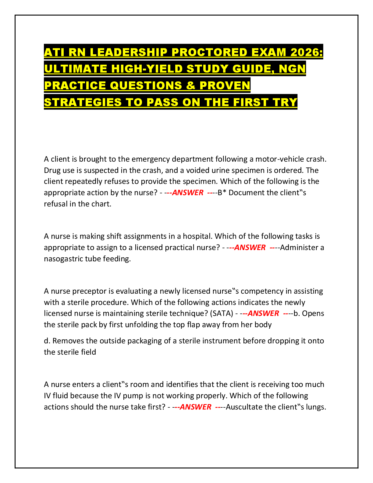 > ATI RN LEADERSHIP PROCTORED EXAM 2026: ULTIMATE HIGH-YIELD STUDY GUIDE, NGN PRACTICE QUESTIONS & PROVEN STRATEGIES TO PASS ON THE FIRST TRY