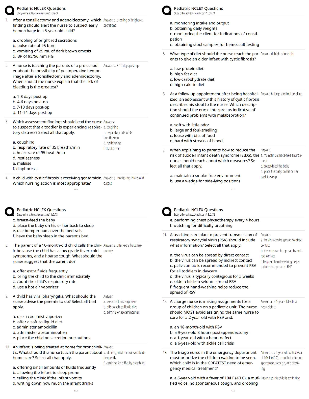 NURSING PEDIATRICSQUESTIONS & ANSWERS  > Pediatric NCLEX Questions / Score 100% / New Version 2025 Update / Comprehensive Pediatric Nursing Practice Test Bank