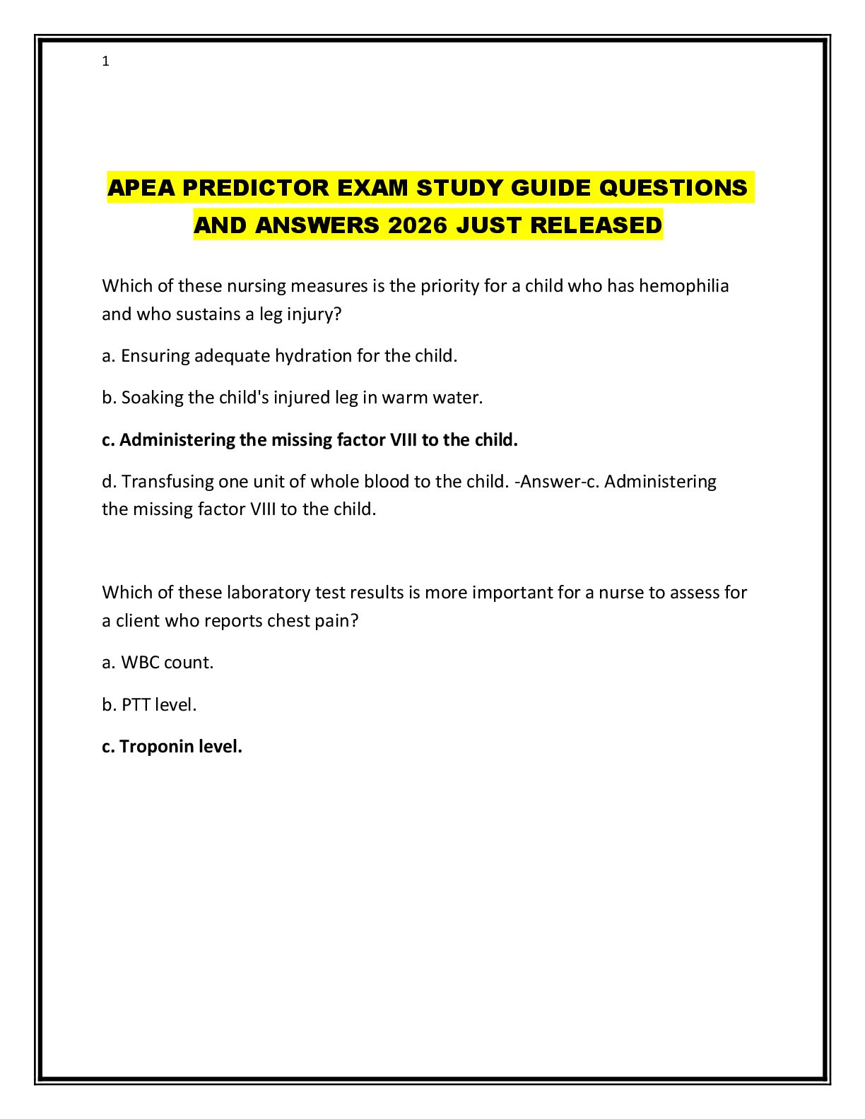 APEA > APEA CERTIFICATION > APEA PREDICTOR EXAM STUDY GUIDE QUESTIONS AND ANSWERS 2026 JUST RELEASED