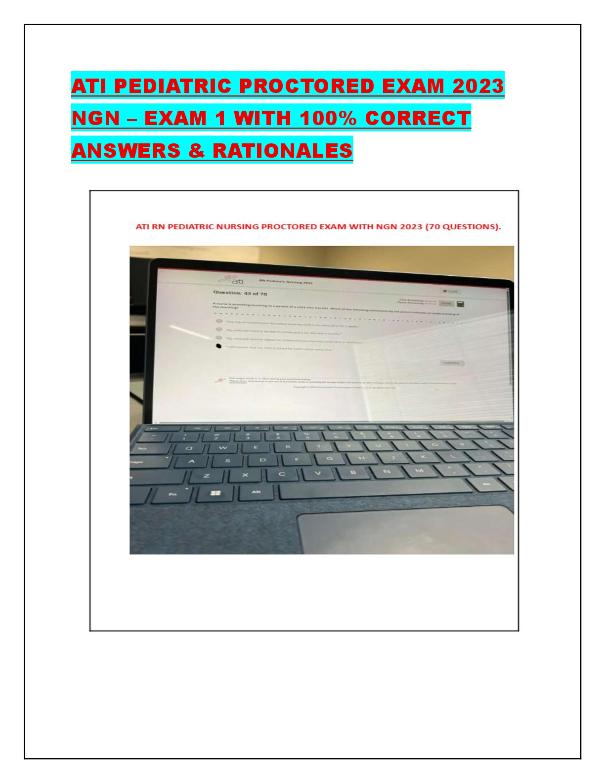 *NURSING > ATI > ATI PEDIATRIC PROCTORED EXAM 2023 NGN – EXAM 1 WITH 100% CORRECT ANSWERS & RATIONALES