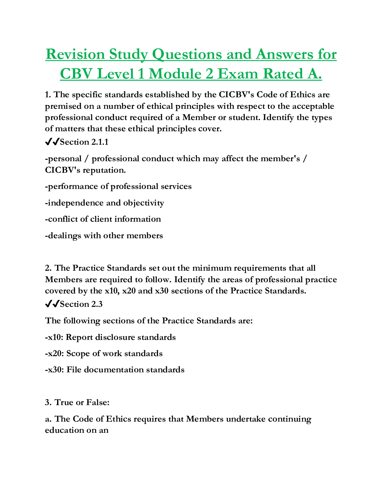 Accounting > EXAM > Revision Study Questions and Answers for CBV Level 1 Module 2 Exam Rated A