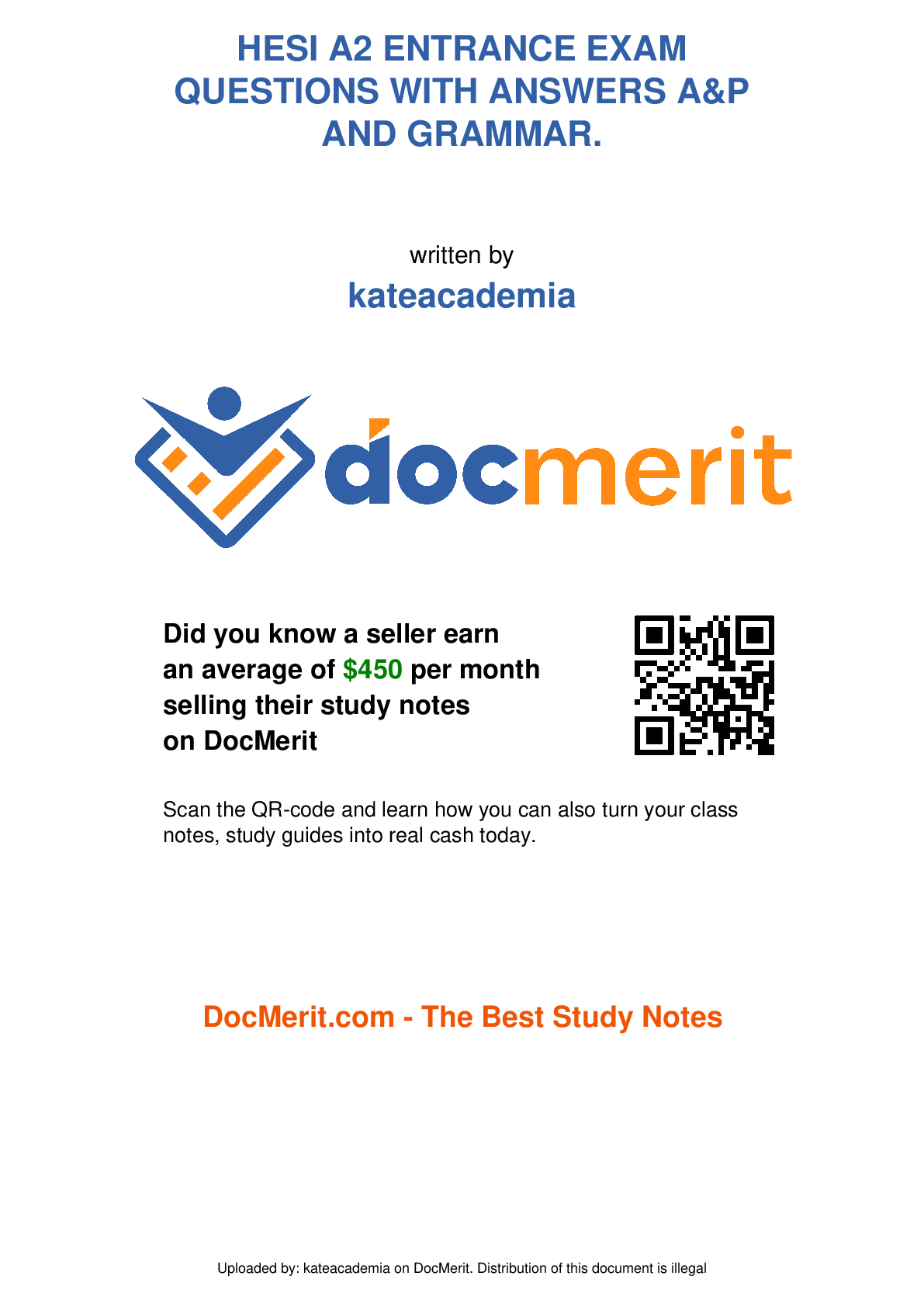 *NURSING > EXAM > Hesi a2 Entrance Exam All Subject and Versions Questions Answers Latest Update In The Real Exam