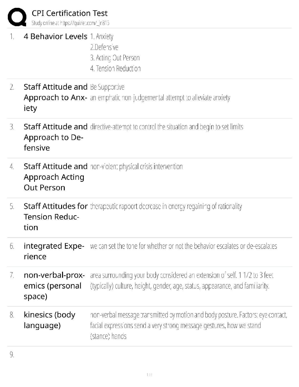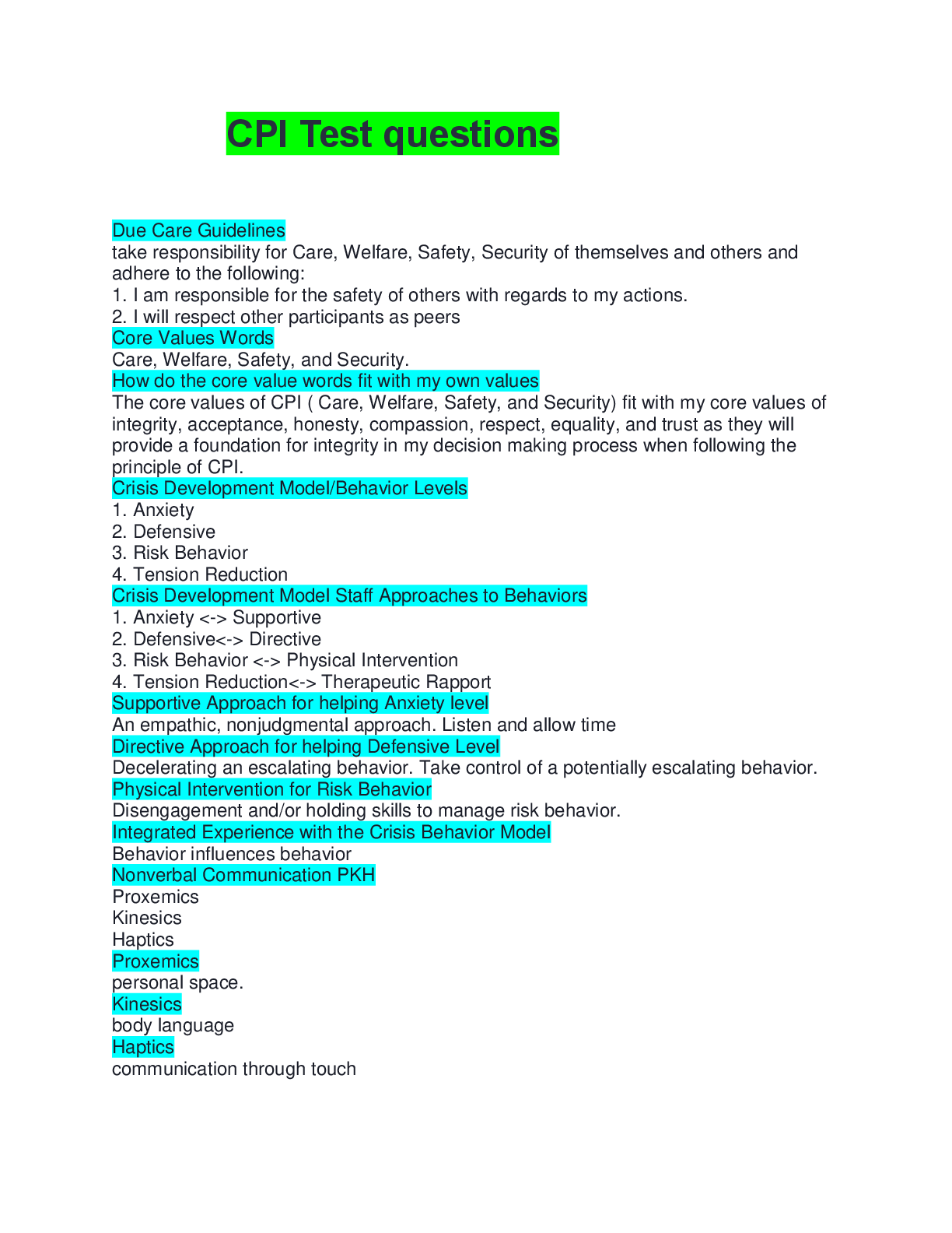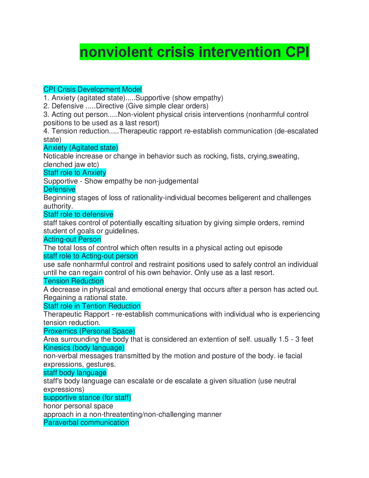 Psychology > EXAM > nonviolent crisis intervention CPI questions with correct answers 100% complete solution 2026