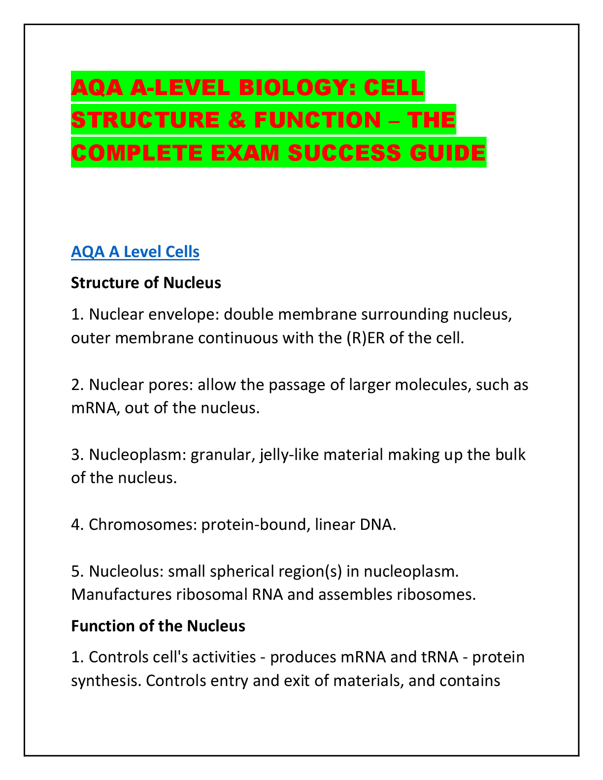 *NURSING > AQA > AQA A-LEVEL BIOLOGY: CELL STRUCTURE & FUNCTION – THE COMPLETE EXAM SUCCESS GUIDE