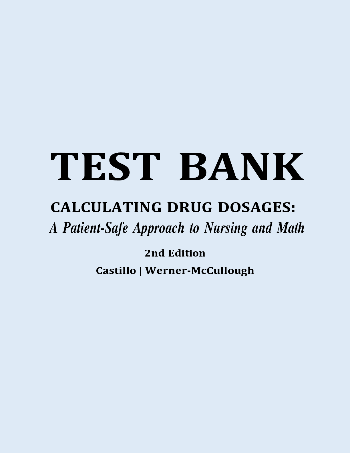 Dosage Calculations for Nursing Students > TEST BANKS > TEST BANK CALCULATING DRUG DOSAGES A PATIENT-SAFE APPROACH TO NURSING AND MATH ANDRA LUZ MARTINEZ DE CASTILLO AND MARYANNE WERNER-MCCULLOUGH 2 nd Edition