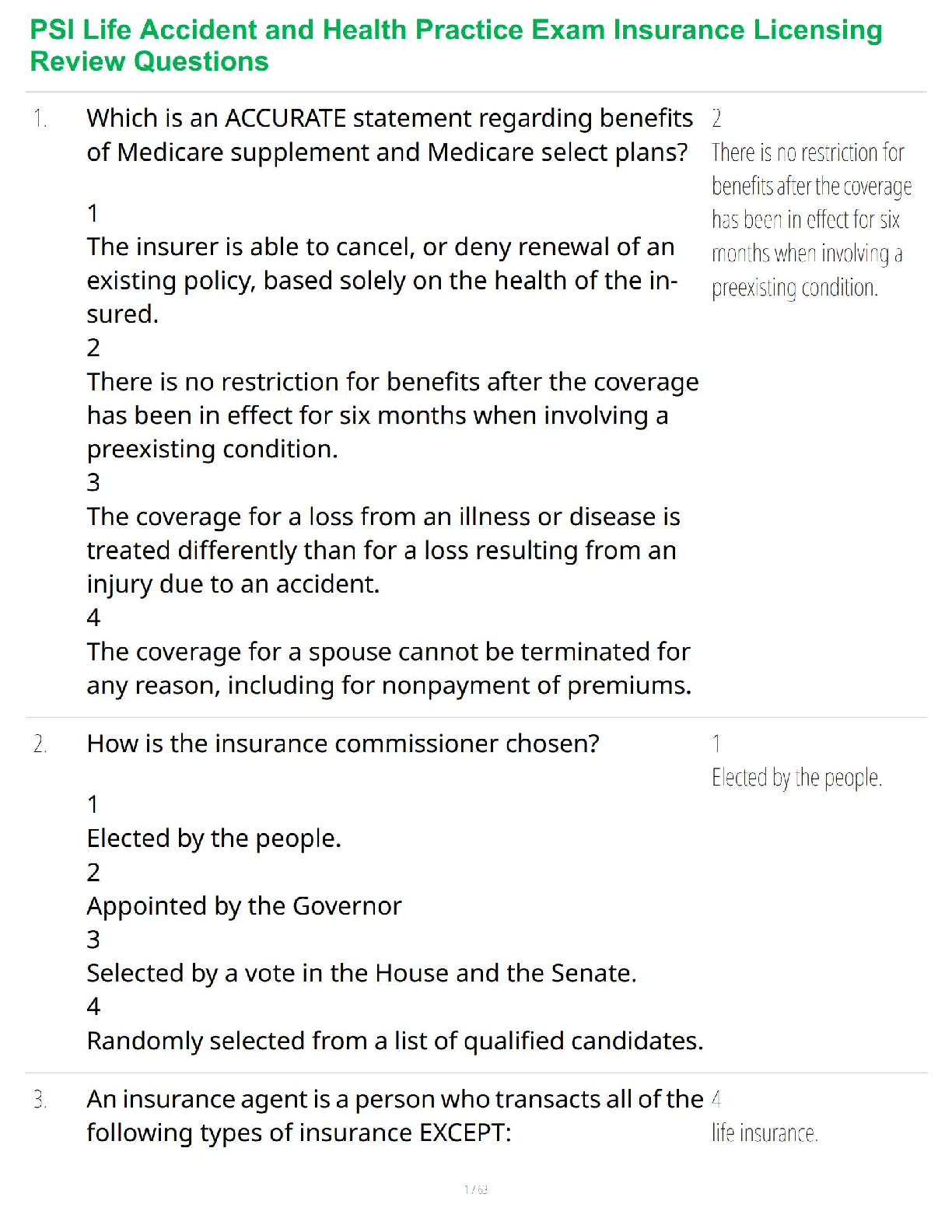Health Care > STUDY GUIDE > PSI Life Accident and Health Practice Exam Comprehensive Insurance Licensing Review Questions