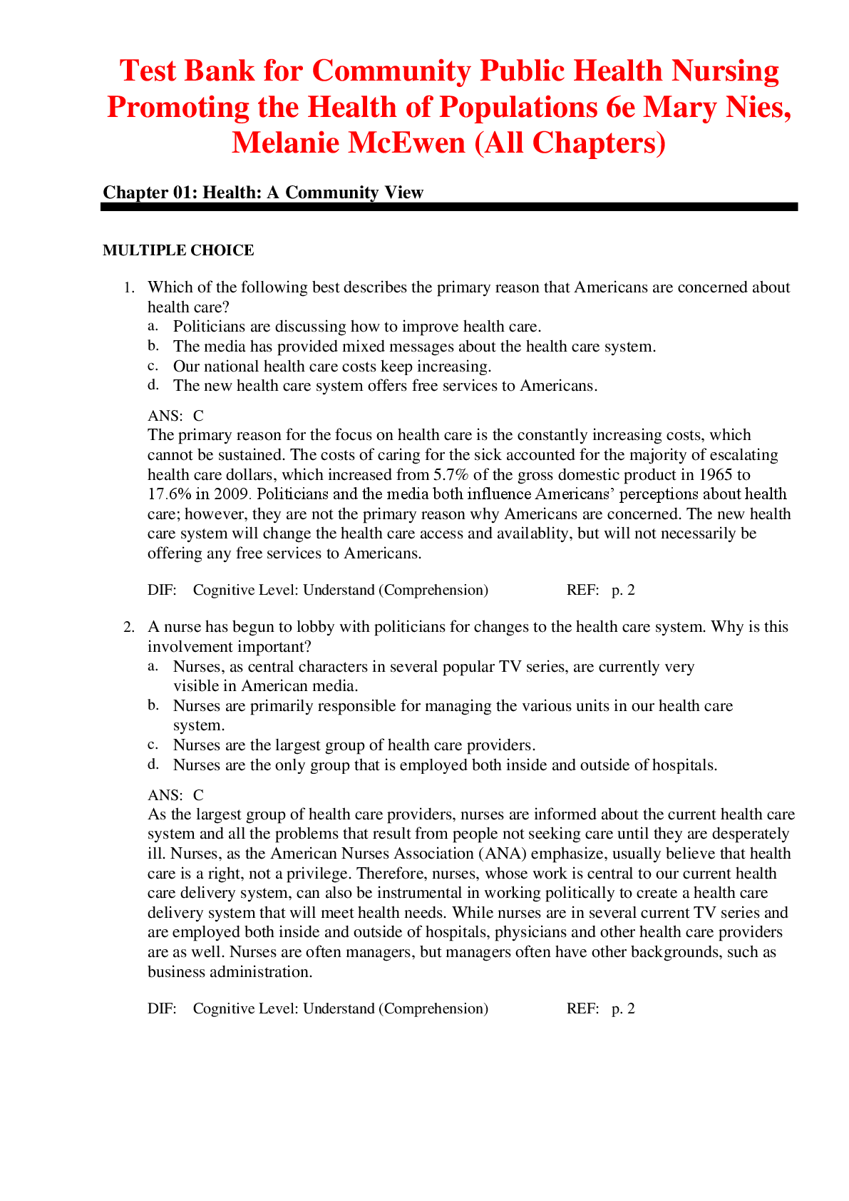 *NURSING > TEST BANKS > Test Bank for Community Public Health Nursing Promoting the Health of Populations 6th Edition By Mary Nies, Melanie McEwen A+