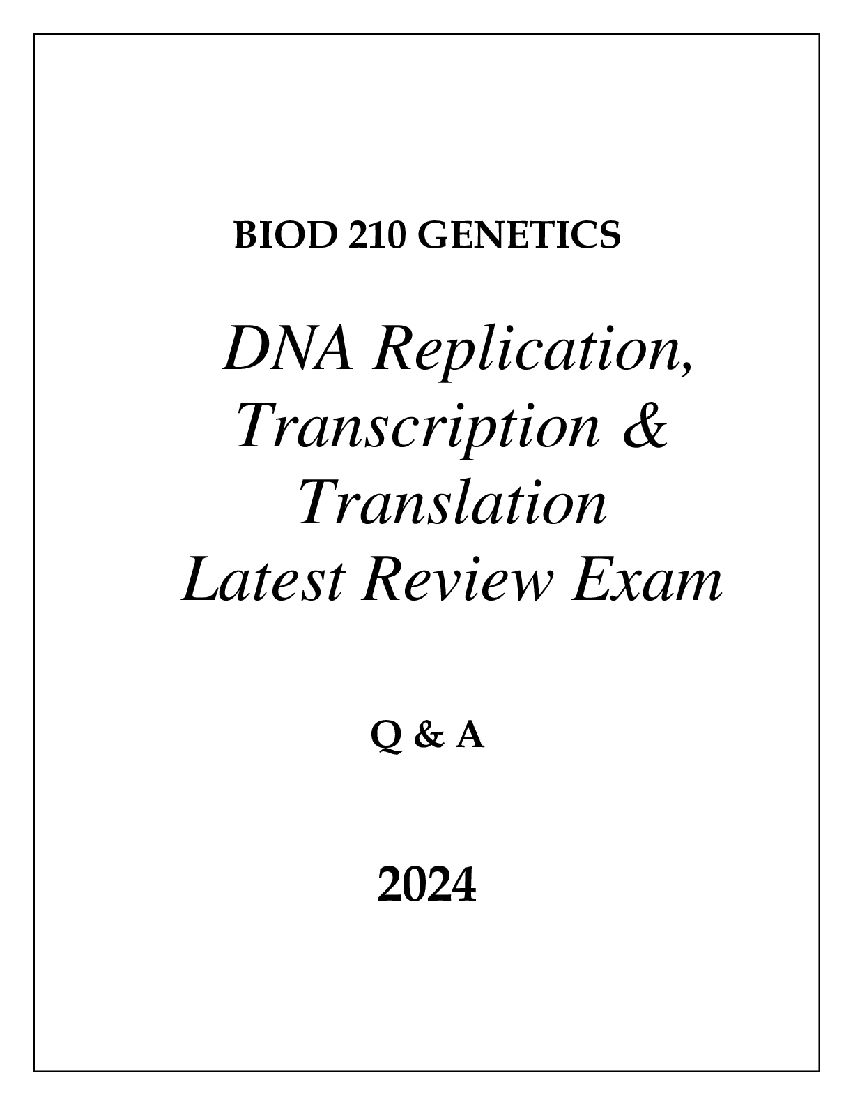 *NURSING > EXAM > BIOD 210 MOD 6 GENETICS (DNA REPLICATION TO TRANSLATION) LATEST REVIEW EXAM Q & A 2024