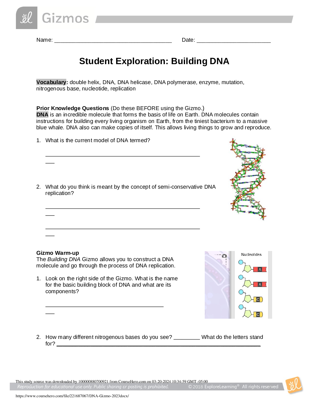 *NURSING > EXAM > Gizmo Student Exploration Building DNA 2023
