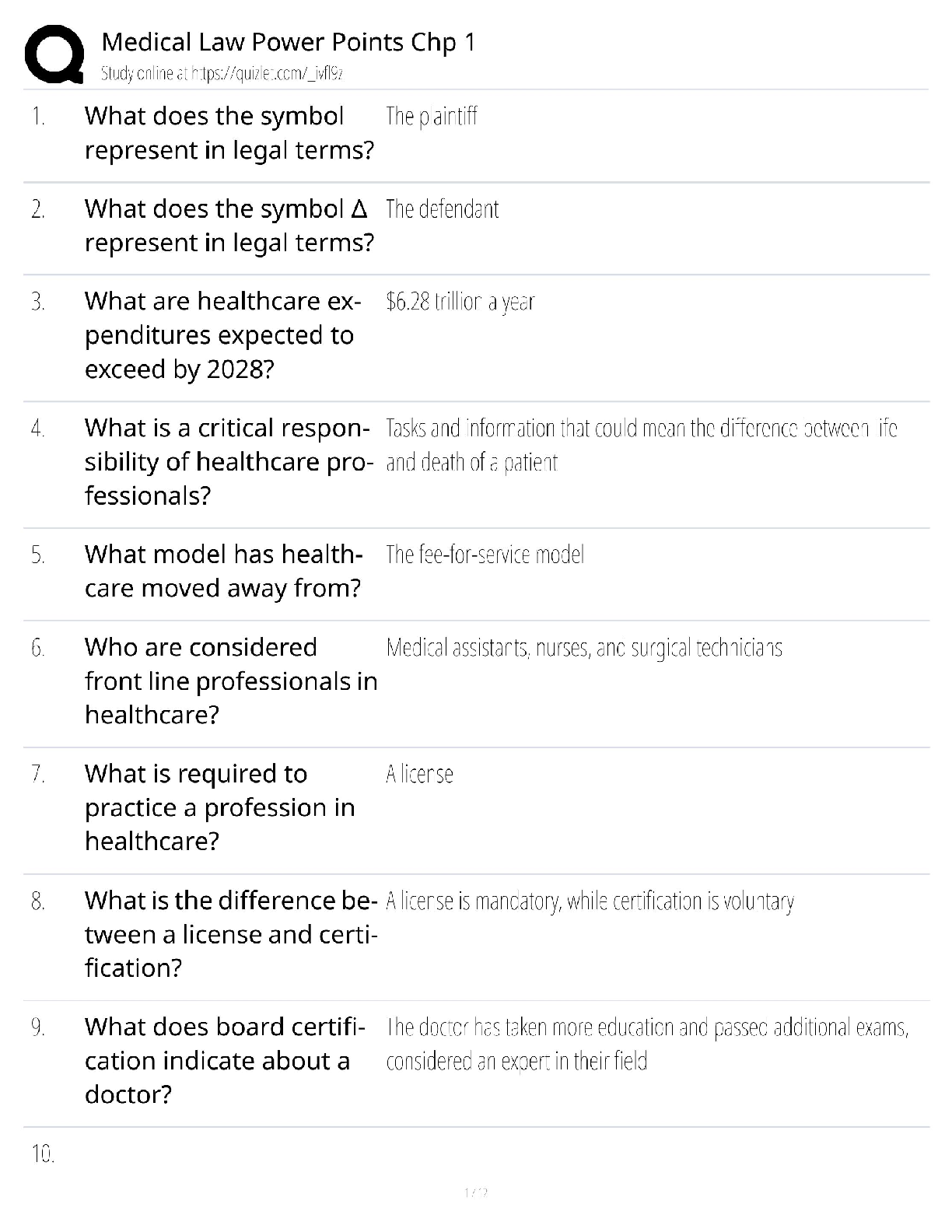 Medical Studies > QUESTIONS & ANSWERS > Medical Law Chapter 1 PowerPoints / 2026 Study Guide / Healthcare Law Exam Prep / Practice Test / Score 100%