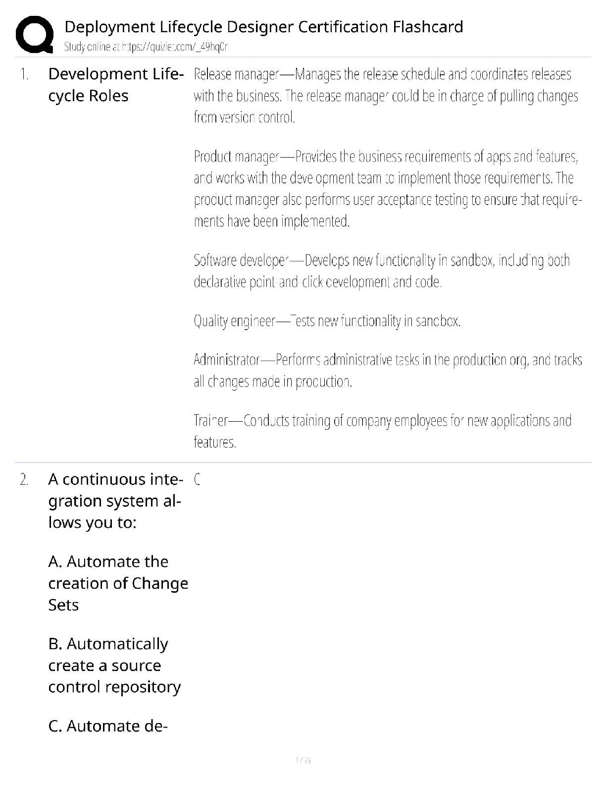 Business Management > QUESTIONS & ANSWERS > Deployment Lifecycle Designer Certification Flashcard / Score 100% / New 2025 Update / Salesforce Study Guide