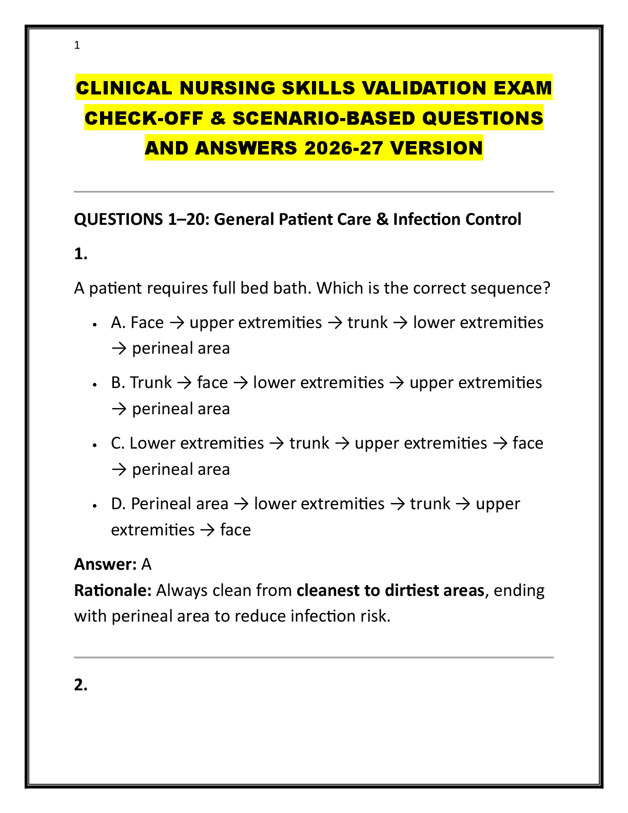 *NURSING > EXAM > CLINICAL NURSING SKILLS VALIDATION EXAM CHECK-OFF & SCENARIO-BASED QUESTIONS AND ANSWERS 2026-27 VERSION